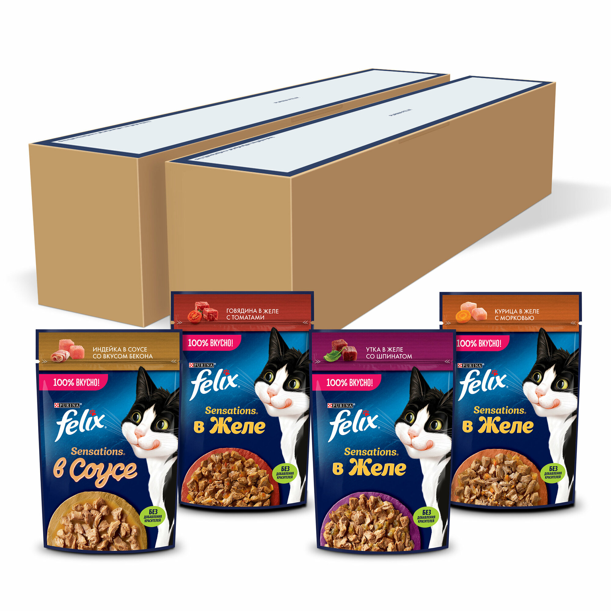 Felix Sensations набор паучей для кошек (кусочки в соусе и желе) (Ассорти 75 г. (52 шт.))