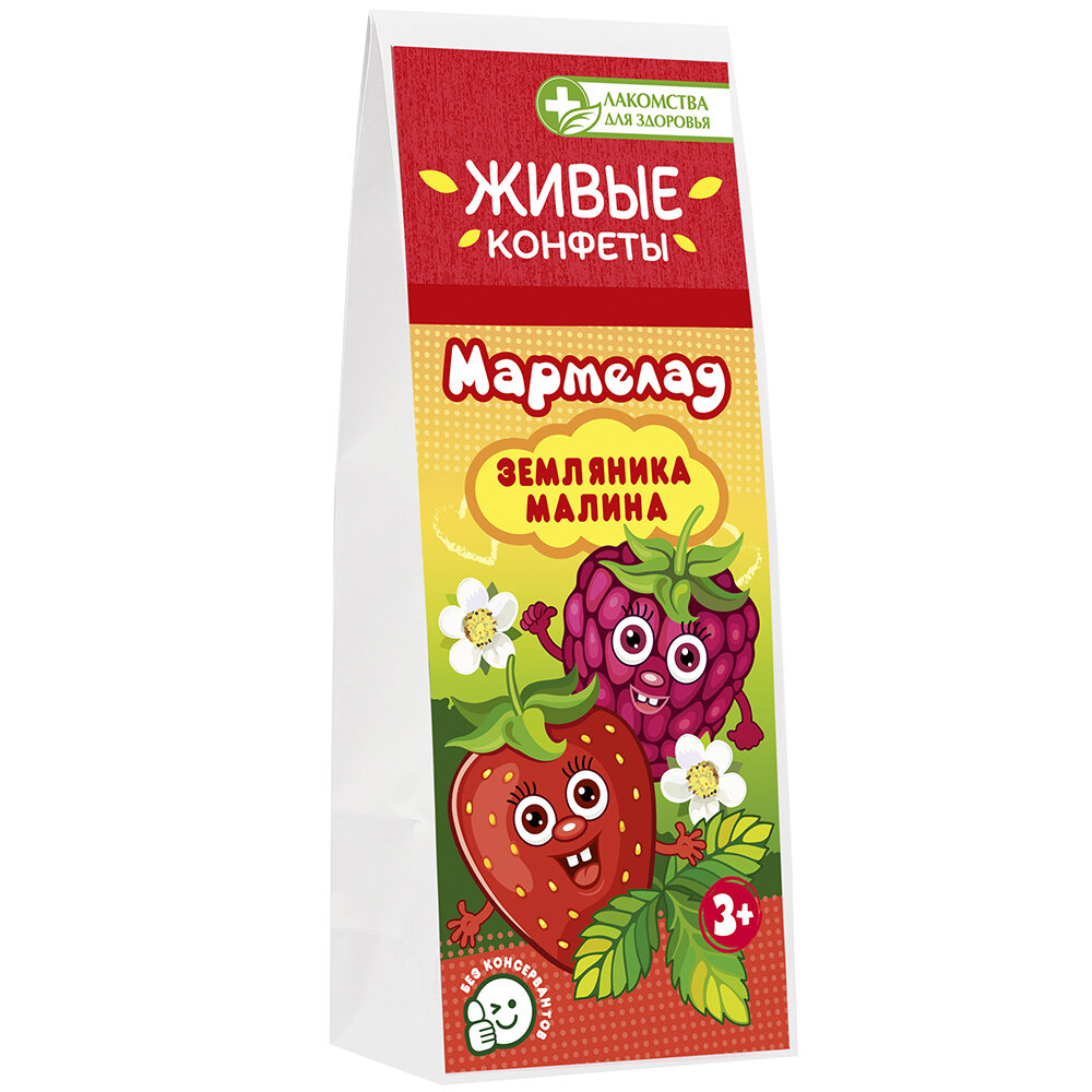 Сервис сравнения цен СкидкаГИД предлагает сравнить цены на товар «Мармелад желейный Живые Конфеты Земляника + Малина "Лакомства для здоровья" 105 г 3+»