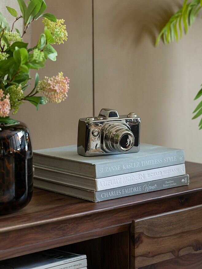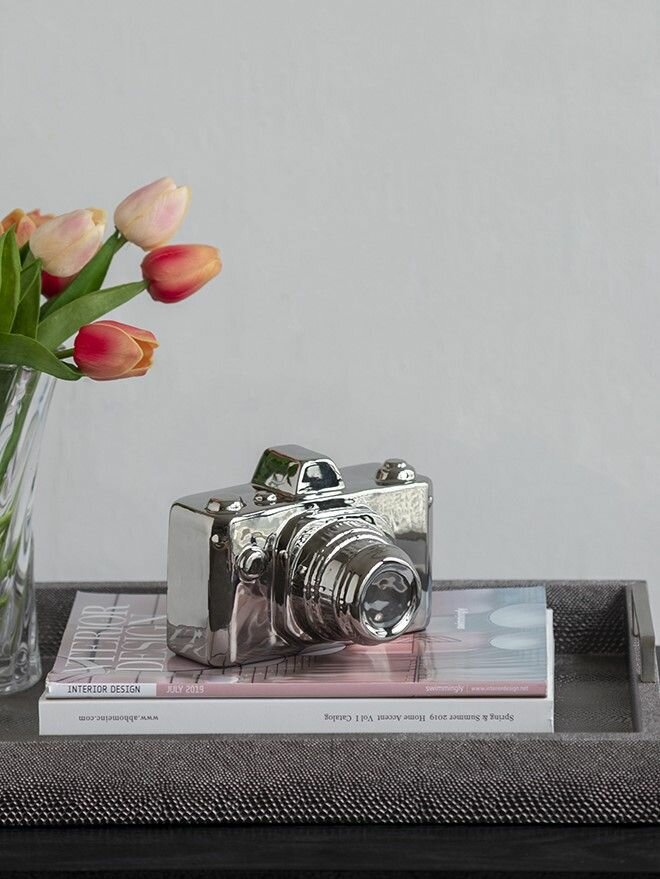 Благодаря сияющему блеску и классической форме, декор в виде фотоаппарата станет ярким акцентом на любой поверхности. Поместите его на шикарный офисный стол, эклектичный столик в прихожей или на полку в домашней библиотеке, чтобы создать ослепительную, слегка ностальгическую атмосферу. Серебристая фотокамера станет идеальным подарком для фотографов и любителей фотографии. Размер: 16х13х11см. Материал: Керамика. Вес изделия: 0,55 кг. Компания "GLASAR" более 30 лет радует своих покупателей эксклюзивной продукцией для создания неподражаемого стиля, красоты и уюта в каждом доме. Ассортимент коллекционных изделий позволит подобрать товары в одной цветовой гамме для создания дизайнерских композиций. Декоративные изделия представлены в различном ассортименте: напольные, настольные, интерьерные, под старину. Различные конфигурации: классические, тематические, геометрические: овальные, квадратные, круглые, прямоугольные; в виде женского и мужского образа, в форме животных. Различные стили: дворцовый, классический, винтажный, античный, модерн, лофт. Декоративные изделия выполнены из различных материалов: фарфор, бронза, керамика, полисмолы, железо и другие. Это универсальный декор для комнаты, дома, дачи, коттеджа, квартиры, студии, салона красоты, ресторана, кафе, который может стать центральным элементом в любом интерьере или дополнит его стильной деталью. Изделие великолепно украсит ваш интерьер в гостиной, спальне, прихожей, коридоре, зале, холле, столовой, детской, на кухне или в любом другом пространстве вашего дома, разместите его в офисе или в зоне ресепшен. Декоративные изделия - это отличный подарок маме, папе, бабушке, дедушке, любимой, любимому, мужу, жене, дочке, сыну, сестре, брату, тете, дяде, подруге, другу, коллеге, директору. Прекрасный повод преподнести его на юбилей, день рождения, свадьбу, новоселье, 8 марта, 23 февраля, день учителя, выпускной, день матери, день победы, день отца, масленицу, рождение ребенка, Новый год, Рождество, Крещение.