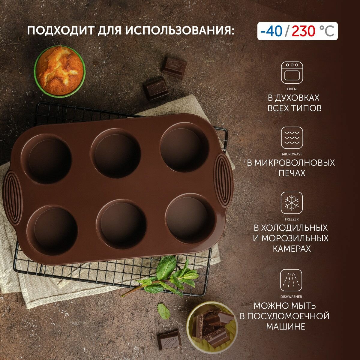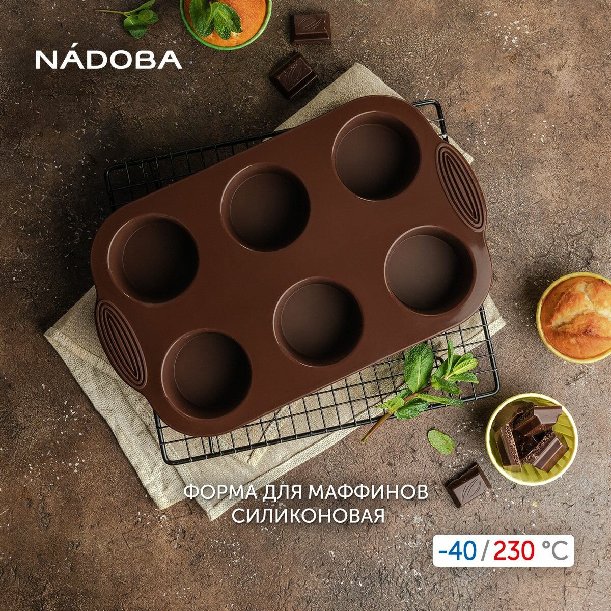 Форма для выпечки Nadoba Alenka для 6 круглых маффинов силиконовая 30x18x43 см