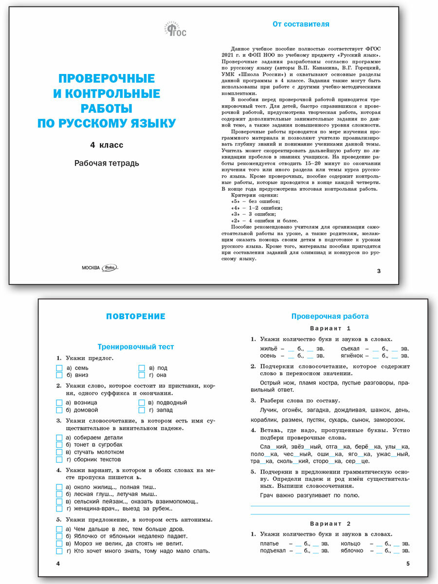 Русский язык. 4 класс. Проверочные и контрольные работы. Рабочая тетрадь. ФГОС (Максимова Татьяна Николаевна); Вако, 2024
