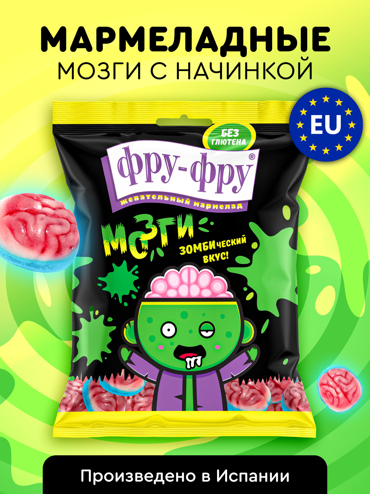 Долгожданное пополнение в дерзкой линейке «Фру-Фру» — вкуснейшие клубничные «Мозги»!Новинка выглядит по-настоящему ярко и дерзко и точно понравится нашей целевой аудитории — подросткам и молодежи, которые любят необычные сладости. У продукта нежная мягкая текстура, жидкая начинка и насыщенные вкус и аромат сладкой клубники. «Мозги» отлично дополняют наши жутко вкусные «пальцы», поэтому эти две позиции могут продаваться как комбо. Такая пара станет запоминающимся презентом для самых отчаянных сладкоежек и любителей ужасов и страшилок.Продукт не содержит глютен. Сегодня потребление глютена ограничивают не только люди, у которых на него аллергия, но и многие приверженцы ЗОЖ. Это связано с тем, что даже у здоровых людей глютен может вызывать тяжесть в желудке и задерживать жидкость в организме.