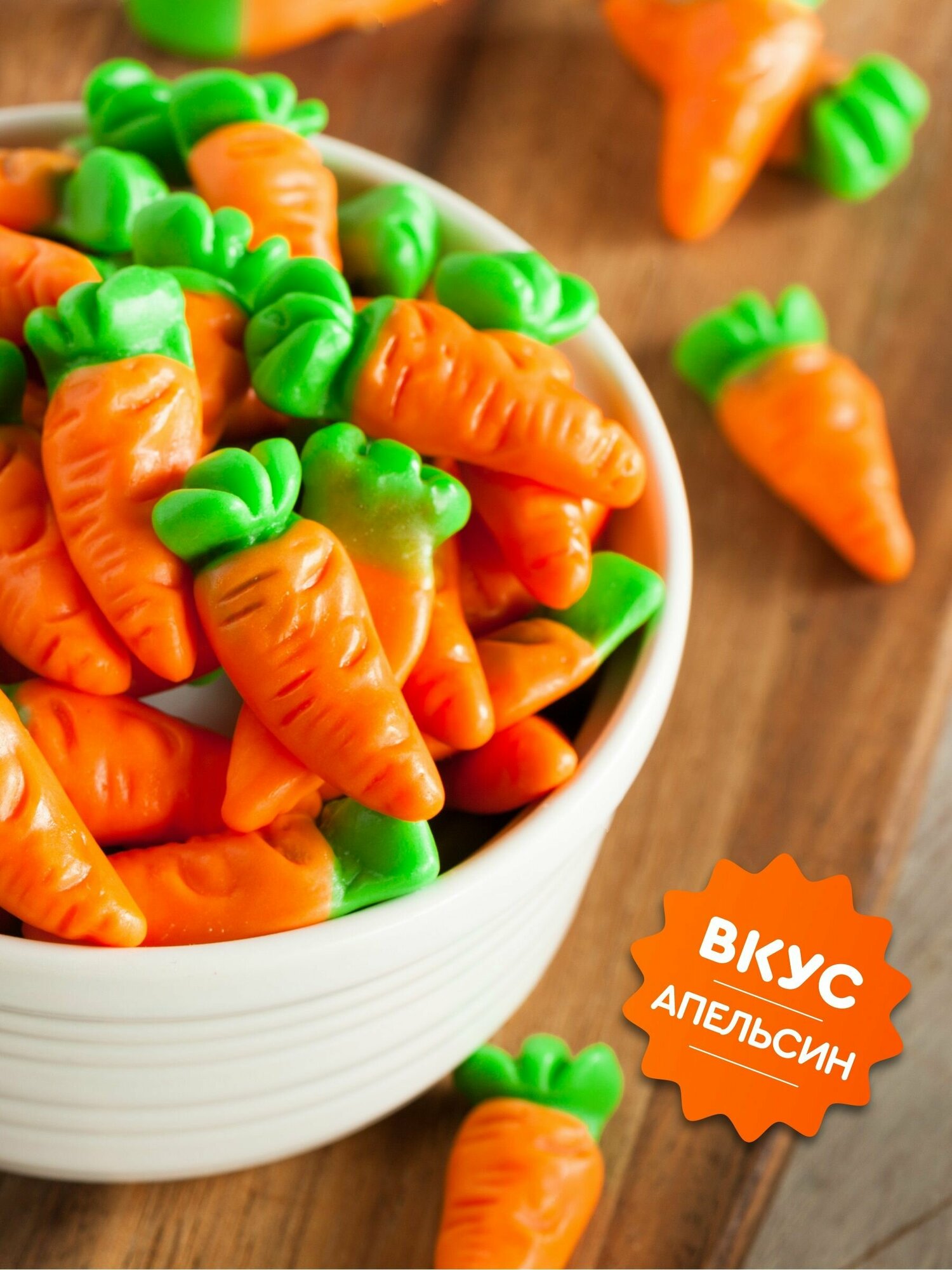 Ярко, вкусно и необычно: ведь это мармеладные «морковки» со вкусом апельсина. Их точно захотят попробовать все! Но делиться «морковками» не захочется — ведь они ну очень вкусные. Мармелад производится на испанской фабрике в соответствии с высочайшими мировыми стандартами и не содержит глютен. Украшайте «морковками» десерты, добавьте их к морковному торту или сладкому канапе, делитесь мармеладом с друзьями! Или не делитесь и съешьте всю упаковку сами — ведь это так вкусно! Мармелад — это угощение, которое нравится и девочкам, и мальчикам, их папам и мамам, друзьям и учителям. Преподнесите набор мармелада в подарок на первое сентябре или выпускной из детского сада сыну или дочке, группе детей, своей подруге — и взрослые, и дети любят кислые и сладкие вкусняшки со вкусом фруктов. В нашем ассортименте есть мармелад разной формы: мармелад в виде мишек, овощей, змеек, тянучки в виде ремней, апельсиновые морковки. Европейский и аргентинский жевательный мармелад содержит желатин, натуральный яблочный и виноградный сок и сахар, поэтому подходит для питания детей старше 3 лет. Сейчас весь мир как бы заново открыл для себя мармелад: подростки снимают хайповые видео с прикольными мармеладками в виде пауков, кислых змей, морковок, бургеров. Устройте мармеладный праздник для друзей — удивите всех своим креативным подходом! Пакетик мармелада — отличный сладкий подарочек мальчику на 23 феврале, девочке на 8 марта, парню или девушке на 14 февраля.