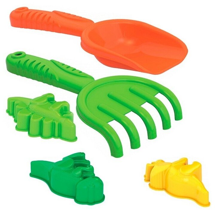 Набор включает самые необходимые инструменты для игры в песочнице, такие как грабельки и совочек.