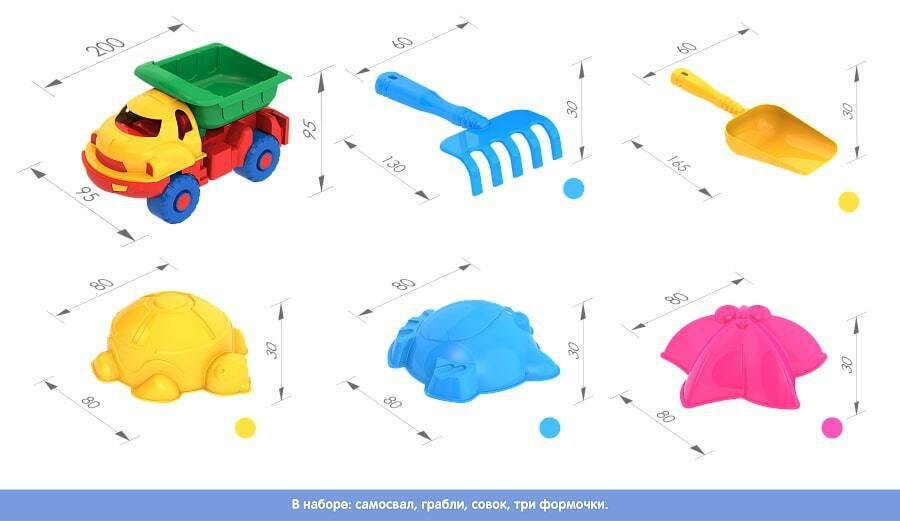 *способствует развитию мелкой моторики рук, фантазии, яркие цвета, которые не выгорают на солнце, прочный безопасный пластик, четкая деталировка, удобные ручки.