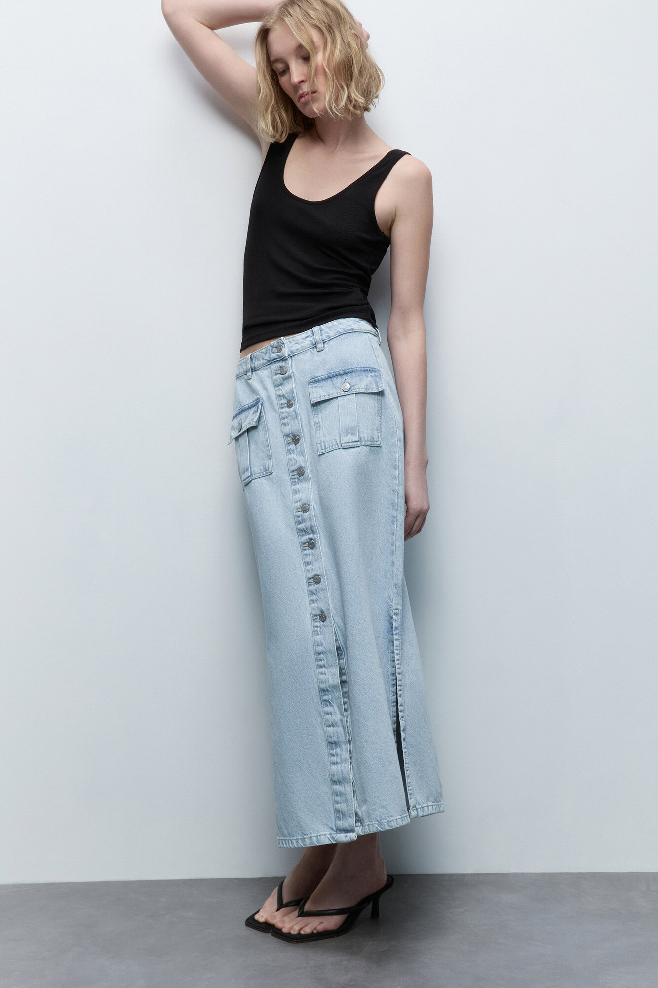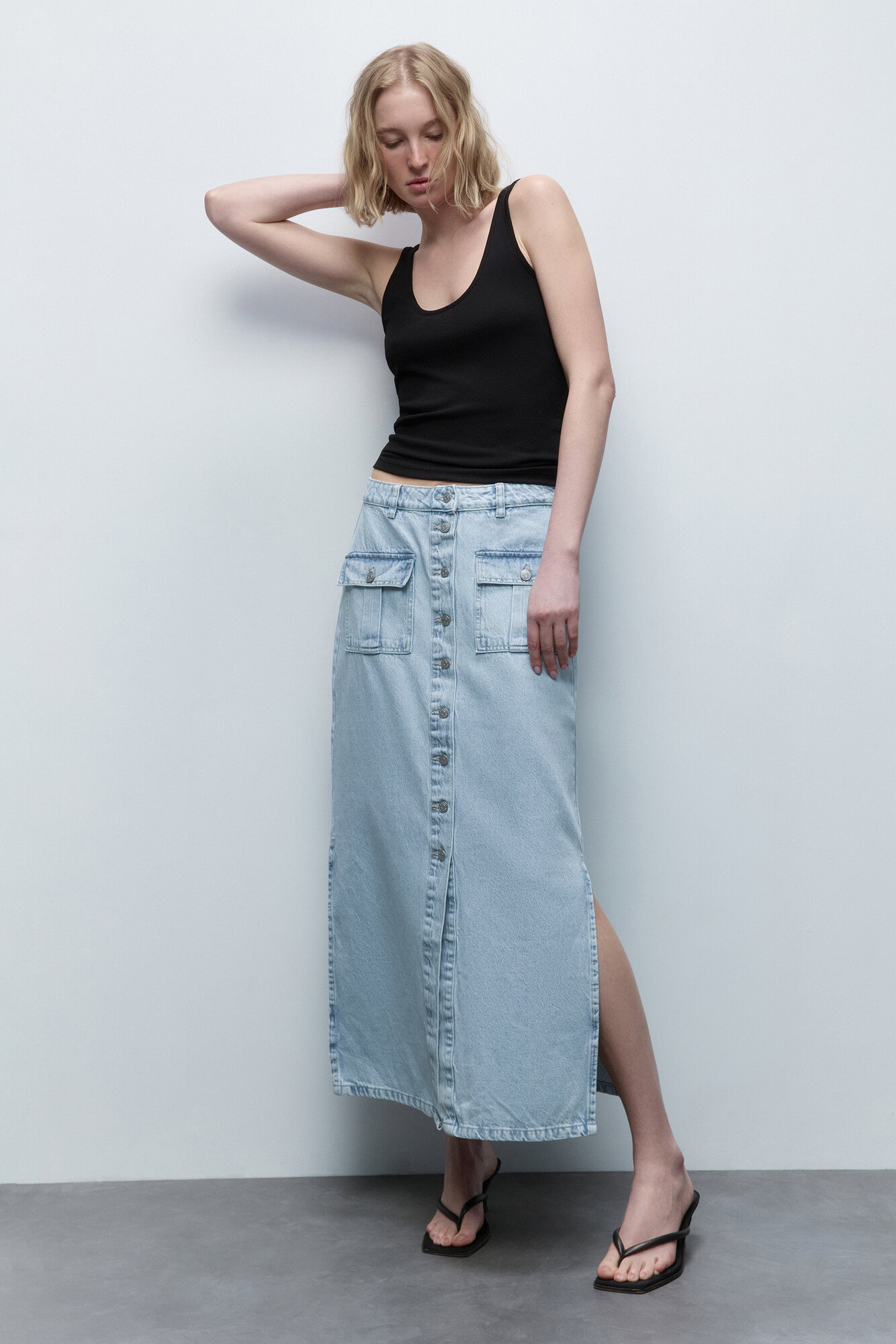- Юбка макси джинсовая прямая с карманами. Женская джинсовая юбка макси прямого кроя из мягкого 100% хлопкового денима
