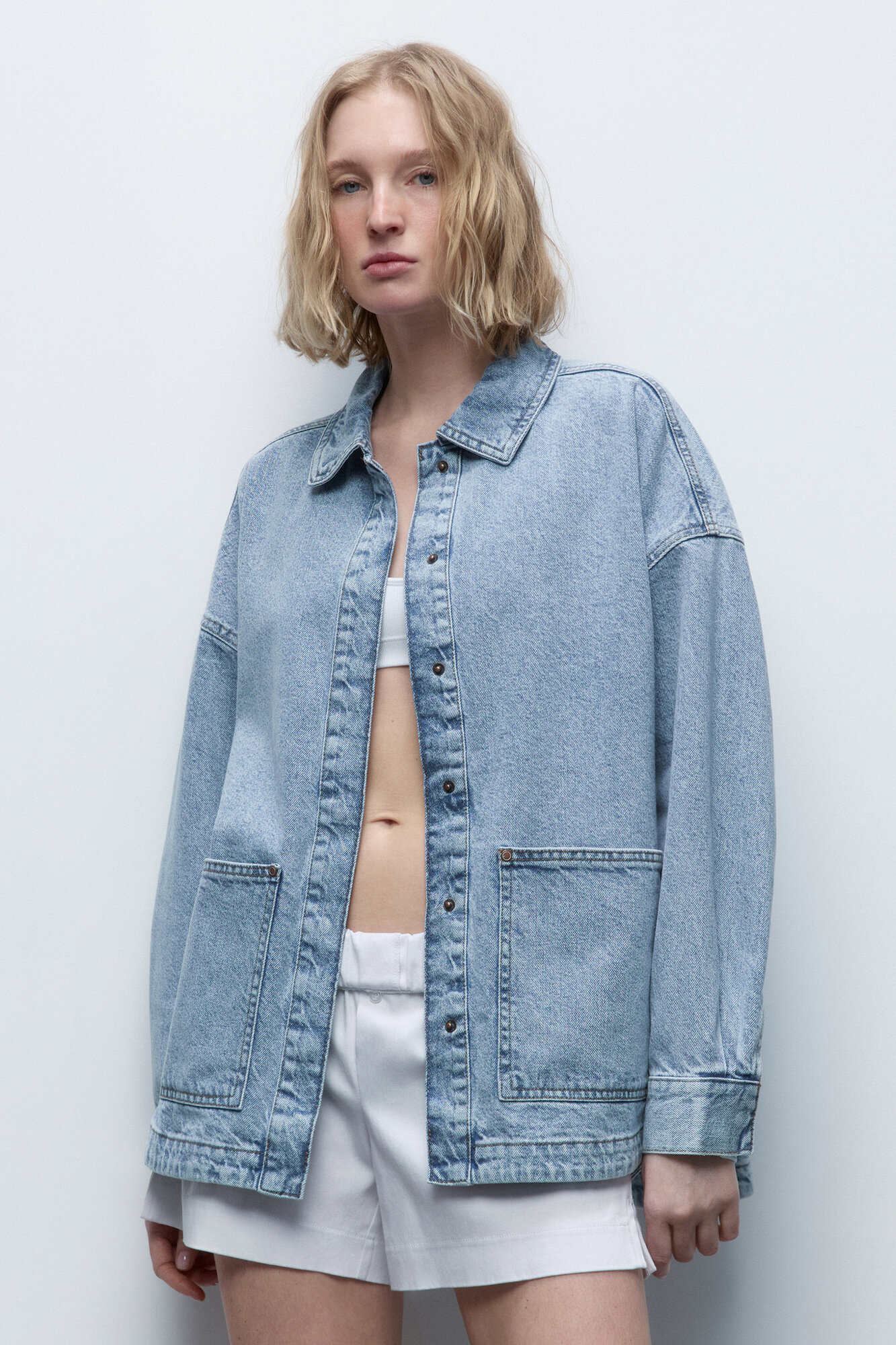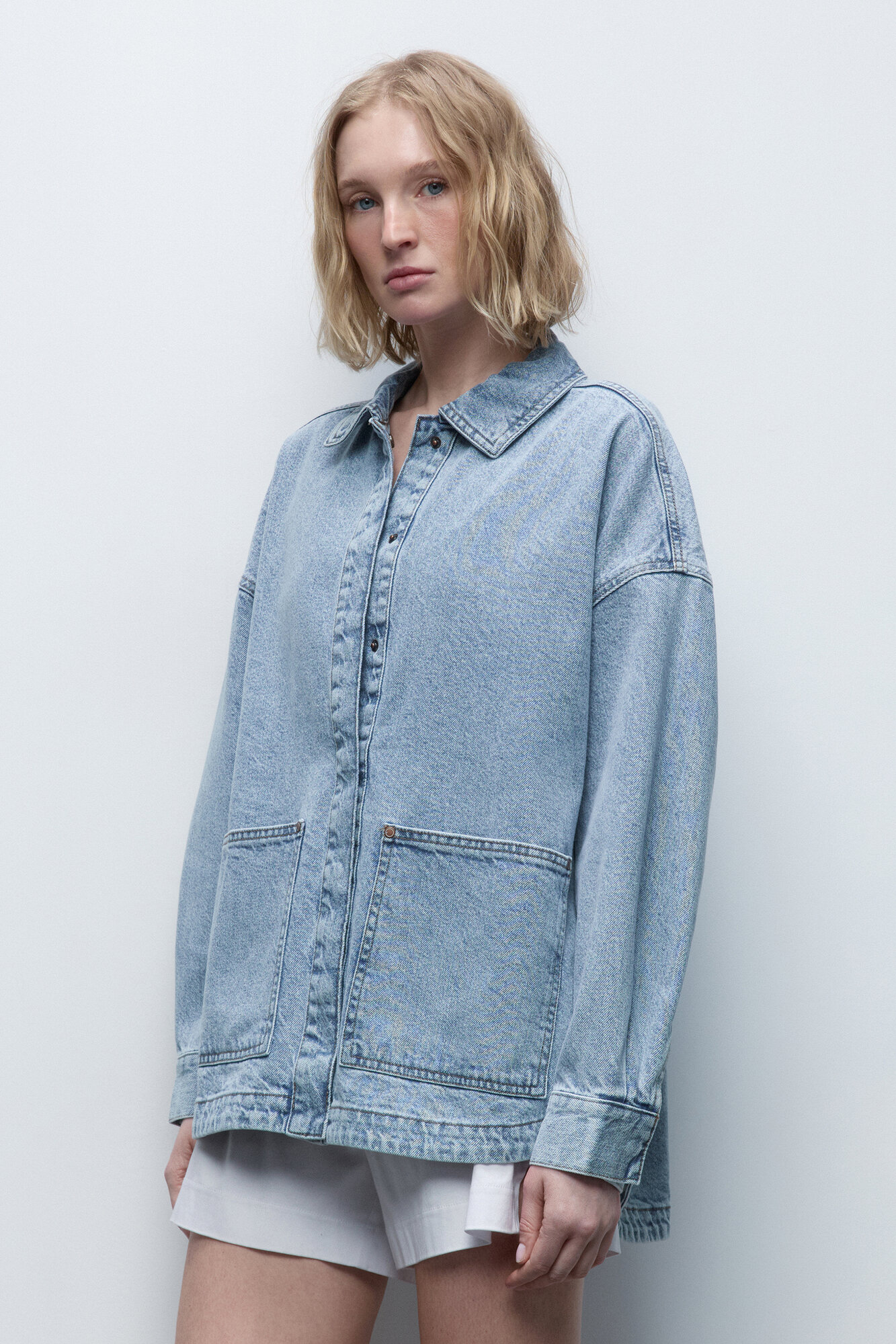 - Стильная верхняя оверсайз-рубашка из денима, которую можно носить как отдельно, так и с футболками, топами или майками в повседневном или уличном стиле. Сочетай ее со своими любимыми брюками, юбками или шортами и создавай самые трендовые расслабленные кэжуал-луки на каждый день. Идеальная верхняя сорочка на весну и лето, которая спасет тебя от вечерней прохлады или неожиданного дождя и которую удобно всегда брать с собой