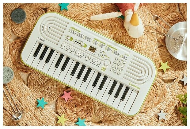 Простота использования, удовольствие от игры идеальный выбор для вашего первого клавишного инструмента . Детский синтезатор в компактном корпусе с прекрасными звуками, ритмами и функциями и 32 мини-клавиши позволяют легко играть даже маленьким рукам.Основные особенности CASIO :- 100 высококачественных встроенных тембров, охватывающих ряд инструментов, включая фортепиано, духовые, перкуссию и многие другие, взятые из акустических инструментов.- Кнопки прямого выбора тембра позволяют одним касанием выбирать тембры фортепиано, трубы или ударных.- 50 ритмических рисунков в различных жанрах, включая поп, баллады, танцы и многое другое.- 10 встроенных песен, под которые можно играть или отключить мелодию и сыграть ее самостоятельно- Точная подача делает его идеальным для хоровой практики и занятий а капелла.- Портативный корпус- Питание от батарей или блока питания переменного тока (батареи переменного тока продаются отдельно)- Разъём для наушников (стерео мини-гнездо)Функции :- Октавный сдвиг: повышайте или понижайте высоту нот в октавах, чтобы охватить широкий диапазон регистров.- Настройка: отрегулируйте настройку с шагом 1 Гц, чтобы она соответствовала другим инструментам или вокалу.- Транспонирование: повышать или понижать ноты с шагом в полутон.- Метроном: полезен для тренировки игры в постоянном темпе.- Регулировка темпа: измените темп ритма и метронома в соответствии с музыкой.- Реверберация: Добавляет к звуку эффект реверберации для более широкого диапазона музыкального выражения.- Максимальная 32-нотная полифония: разработана таким образом, чтобы клавиши звучали даже при одновременном нажатии многих других клавиш.- ЖК-экран: все, что вам нужно знать, в одном месте.