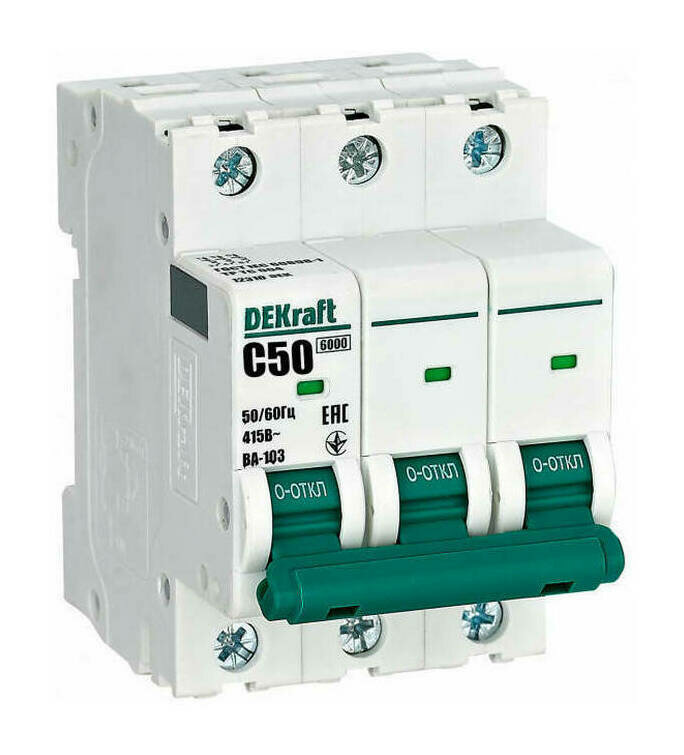 Автоматический выключатель DEKraft 3Р 50А C ВА-103 6кА 12310DEK