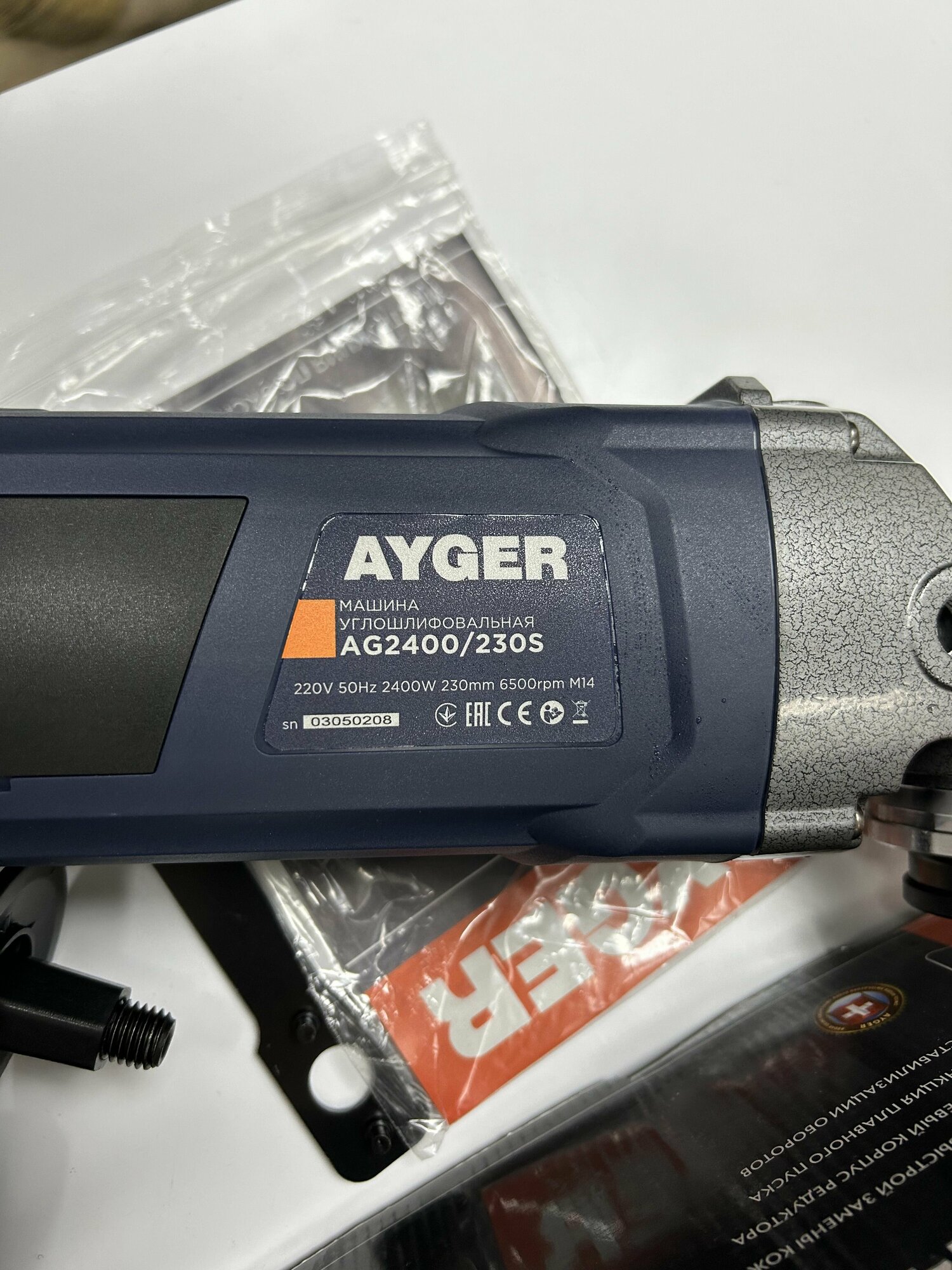 Машина углошлифовальная AYGER 230 мм 6500 об/мин AG2400/230S