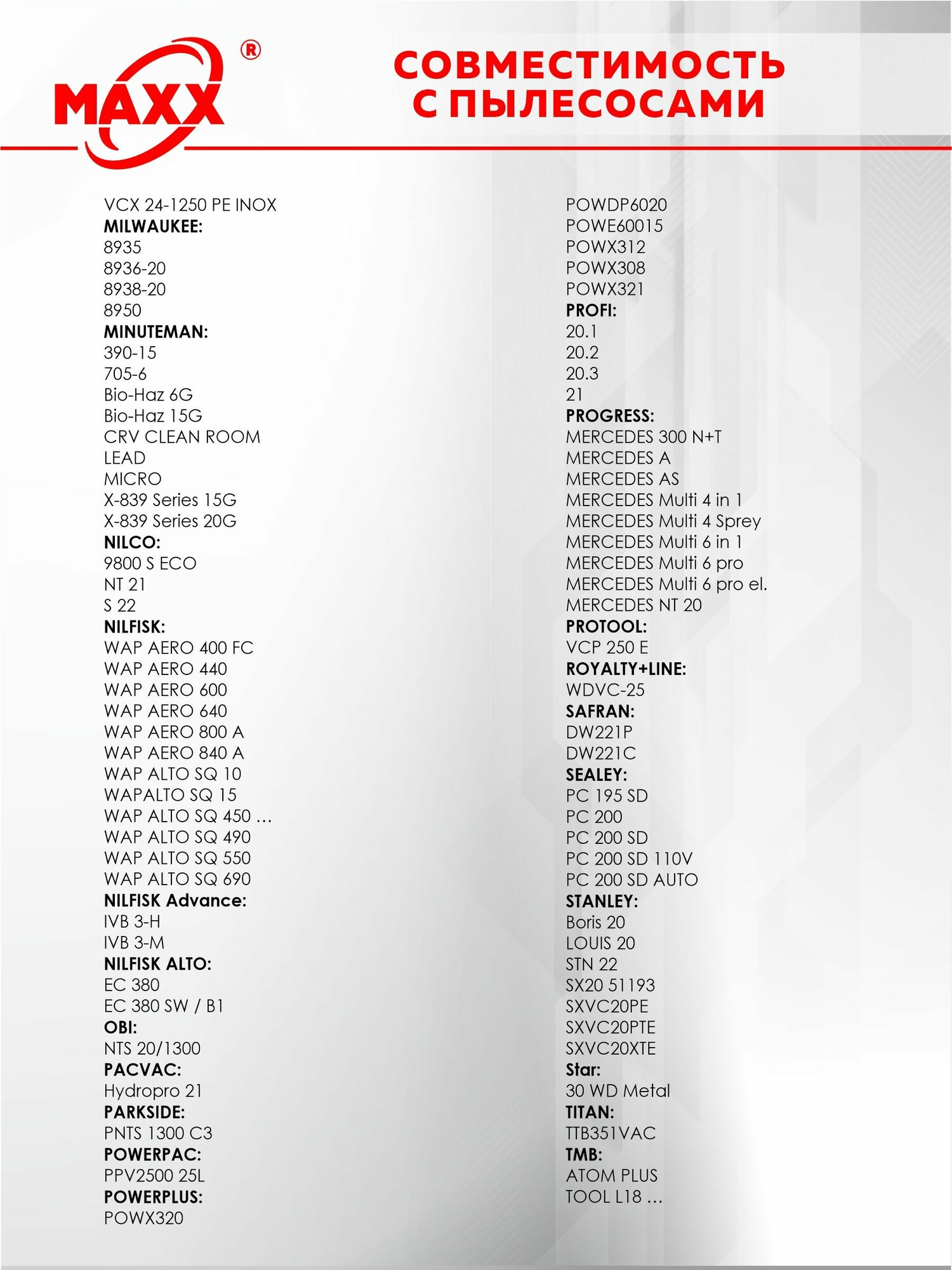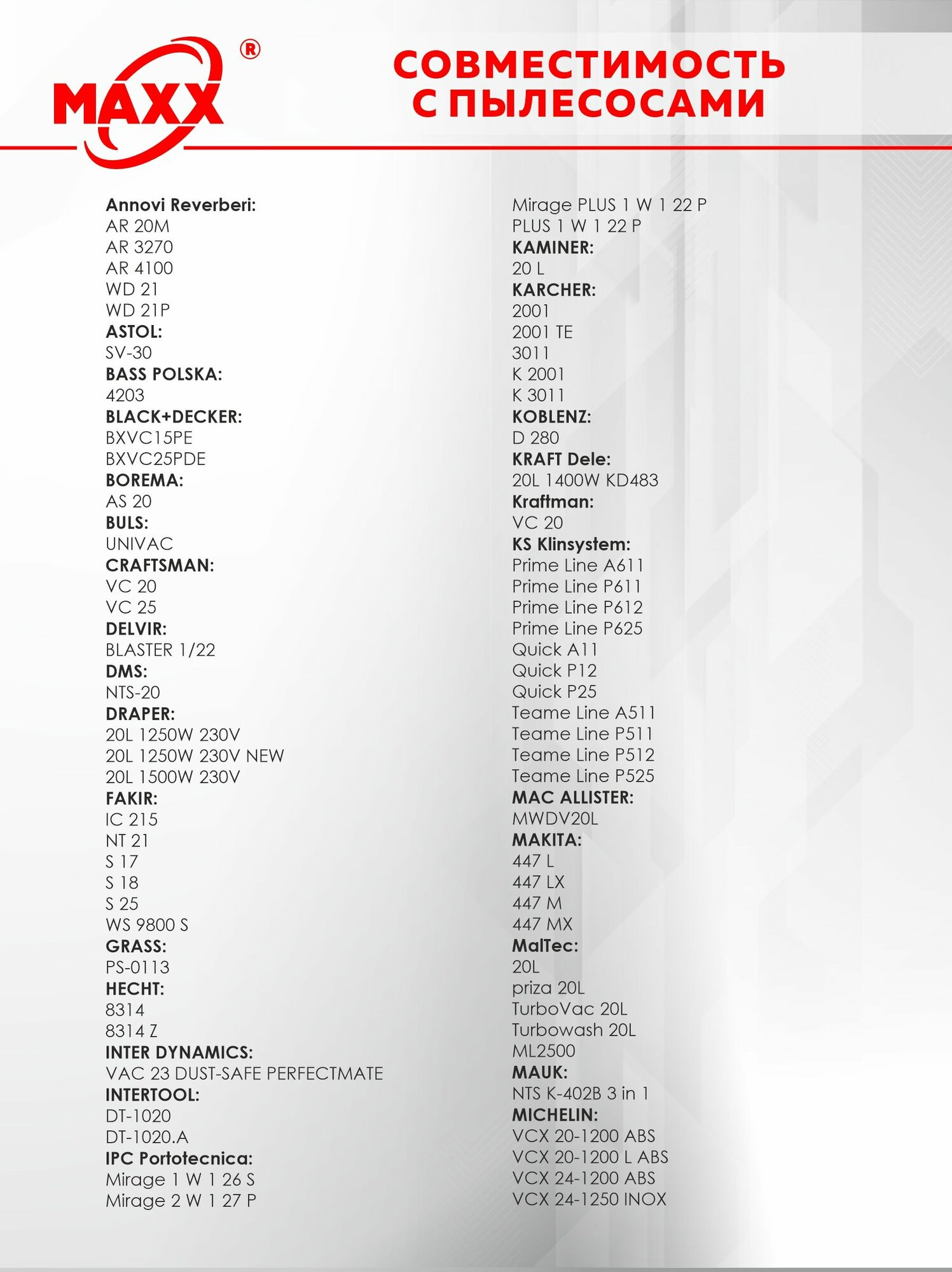 | Подходит для Mac Allister | нет |