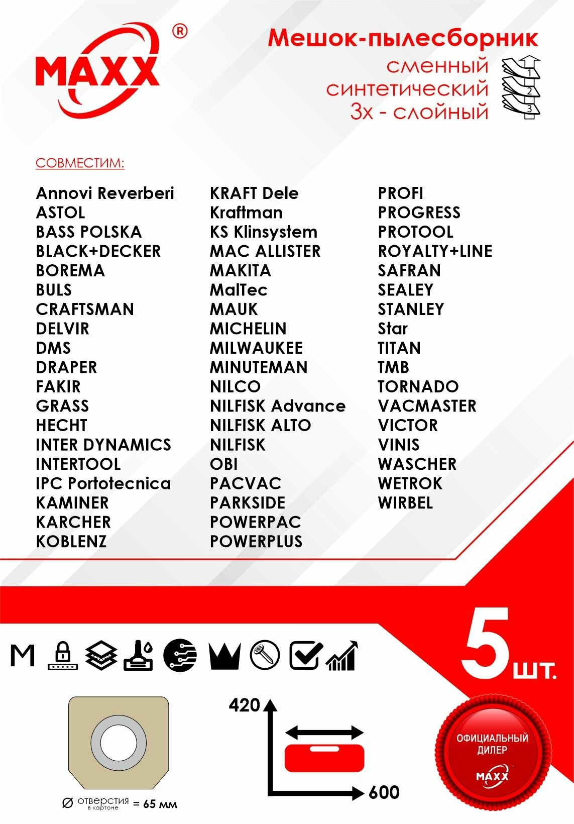 | Комплектация | Мешок - 5 шт. |