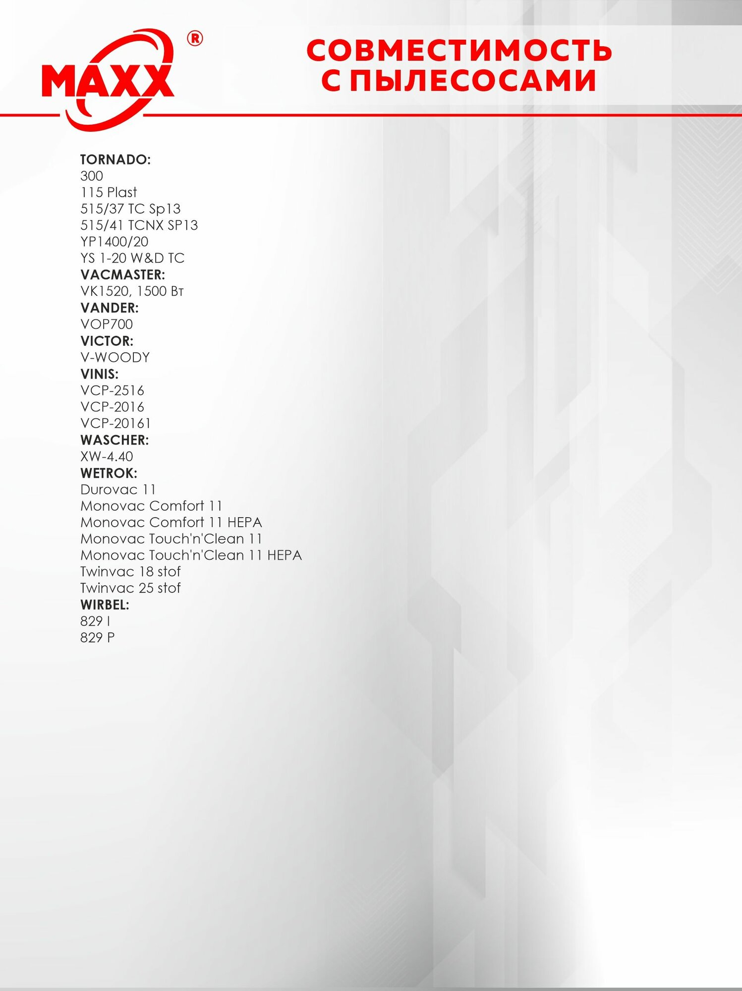 | Подходит для Hoover | нет |