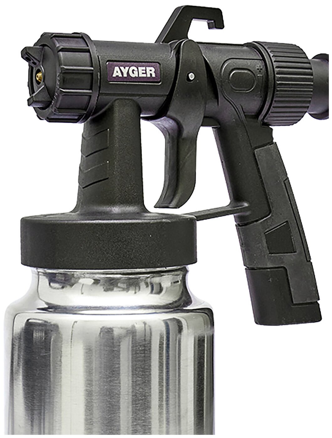 Краскопульт AYGER можно перемещать по строительной площадке, и при этом нет нужды в тяжеловесном компрессоре или воздушном насосе — достаточно иметь доступ к электроэнергии. Аппараты, предназначенные для бытового использования, отличаются простой конструкцией, разобраться в которой сможет каждый!