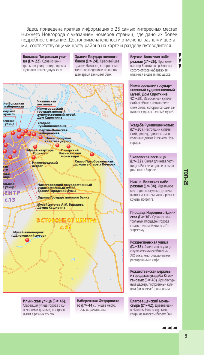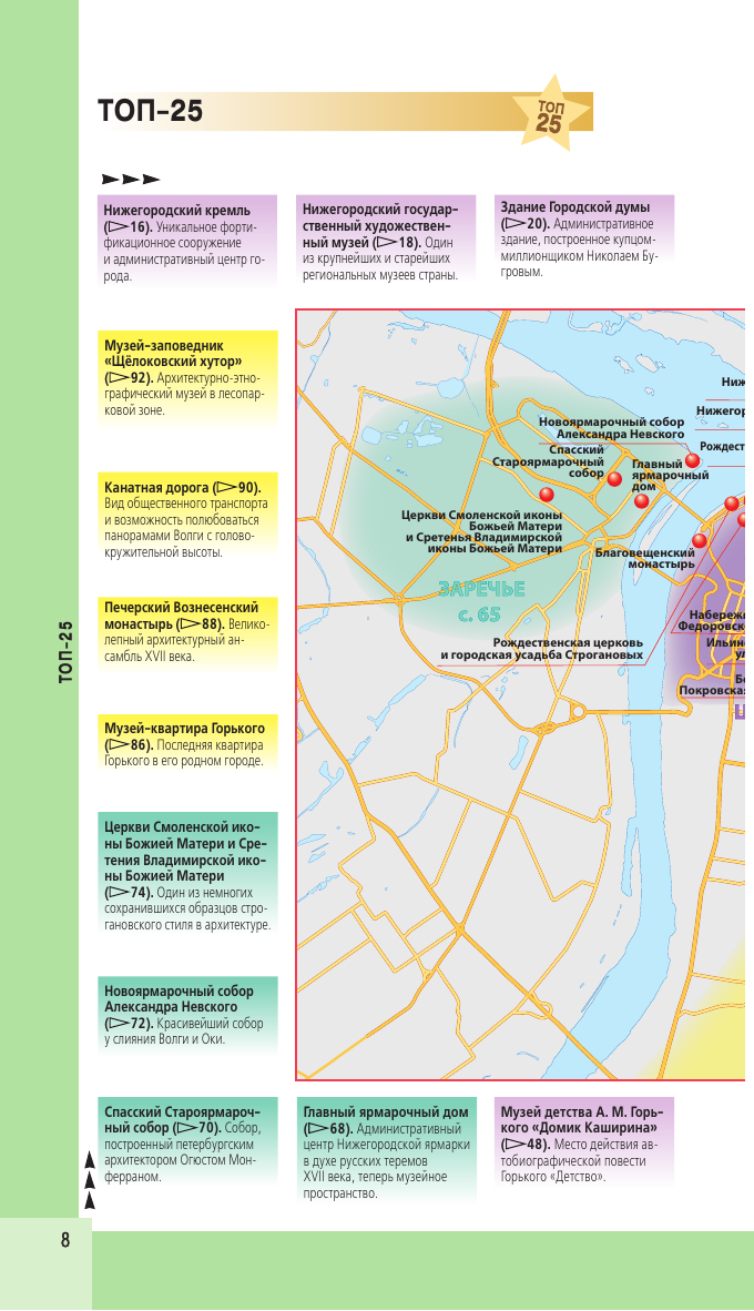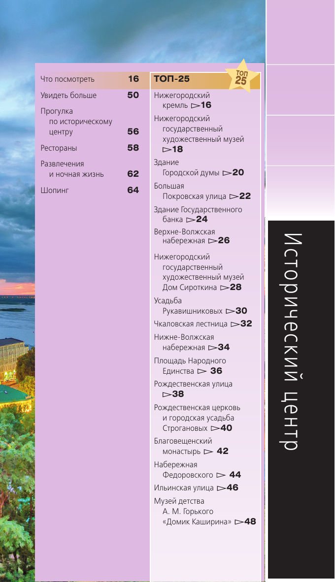 Перед вами гид по Нижнему Новгороду - одному из самых популярных направлений 2024 года. В нем содержится актуальная и полезная информация о городе, советы, как лучше провести первый и второй дни, куда сходить, а также Топ-25 главных достопримечательностей. В путеводителе вы найдете описания самых интересных мест, находящихся в центре и за его пределами, а сориентироваться на местности помогут готовые маршруты и карты, расположенные на страницах гида. Вся необходимая информация о том, где остановиться и попробовать местную кухню, куда пойти и как провести время, доступна с серией путеводителей «Красный гид», которые удобно брать с собой в поездку. В Нижнем Новгороде вы найдете древние храмы и монастыри, колоритные улицы с купеческими особняками, набережные, куда приходят встречать закаты. Здесь сошлось немало самых разных идей и смыслов, и вам решать, что станет лейтмотивом вашего предстоящего путешествия. Откройте для себя Нижний Новгород - административный центр Приволжского федерального округа и город Максима Горького!