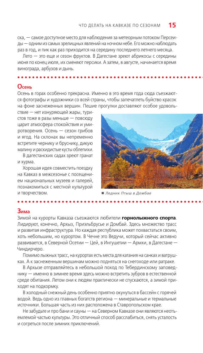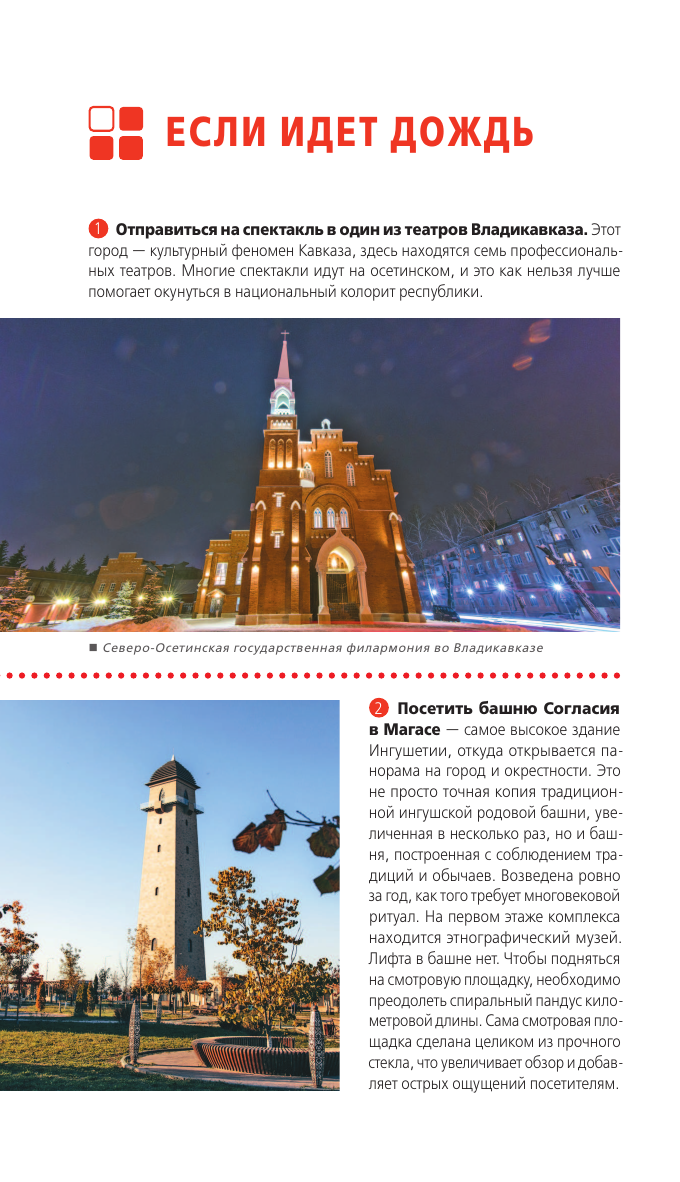 Многовековая история, древние города, кавказский колорит, богатая культура и вкусная еда - все это Северный Кавказ! Отправляйтесь в незабываемое путешествие по краю гор и чистейших озер вместе с «Оранжевым гидом»! В нем содержится актуальная и полезная информация о главных городах региона, различные маршруты прогулок и самостоятельных поездок на любой вкус, подсказки, что делать, если идет дождь, или где искать лучшие смотровые площадки, а также множество полезных авторских советов. В путеводителе собрана главная информация по всем субъектам региона, главное - выбрать, куда вы отправитесь! Сориентироваться на местности помогут удобные карты, расположенные на страницах путеводителя. Вся информация актуальна на 2024 год. Желаем приятного отдыха, а «Оранжевый гид» вам в этом обязательно поможет! «Оранжевый гид» поможет вам спланировать свой отпуск, чтобы вы посмотрели все и даже больше!
