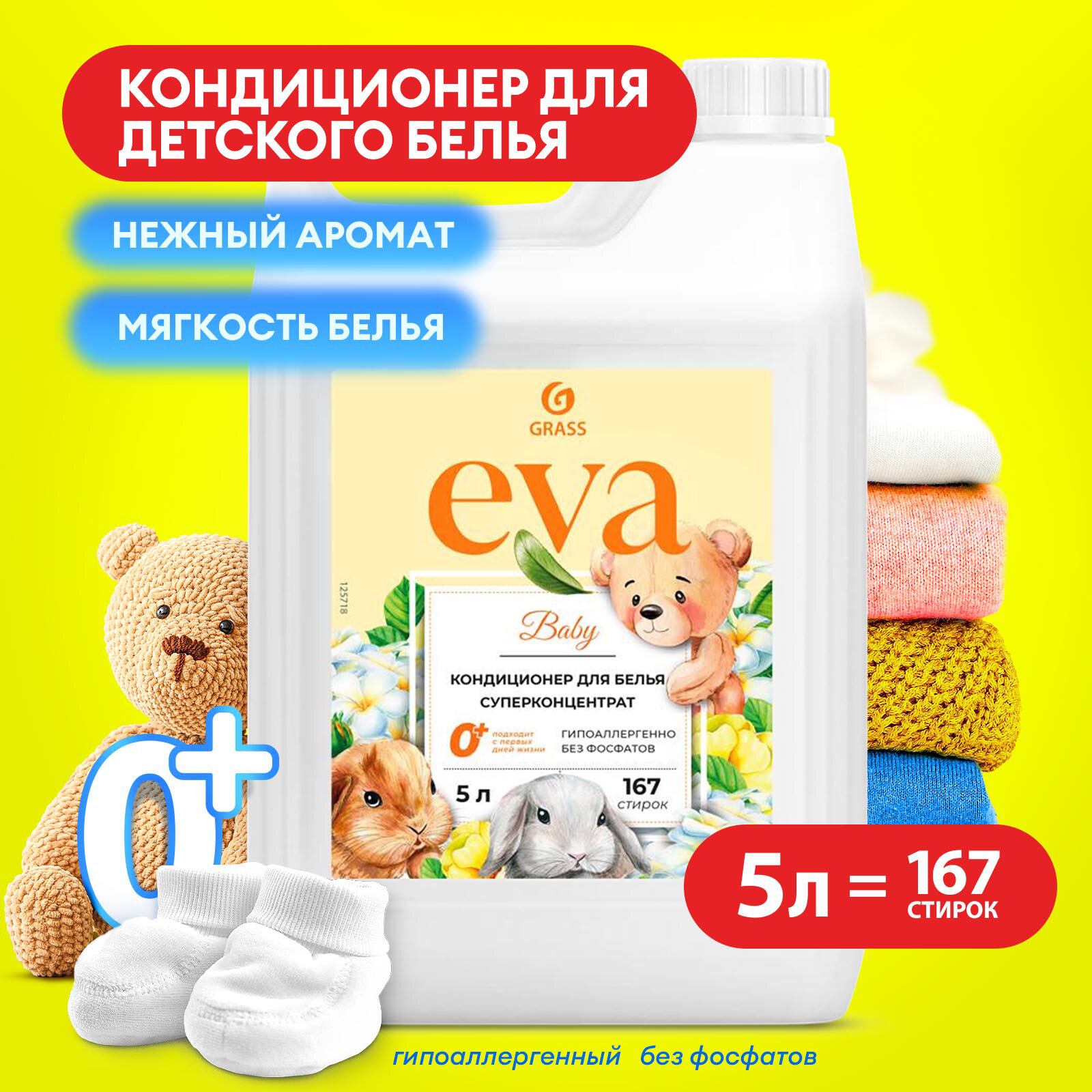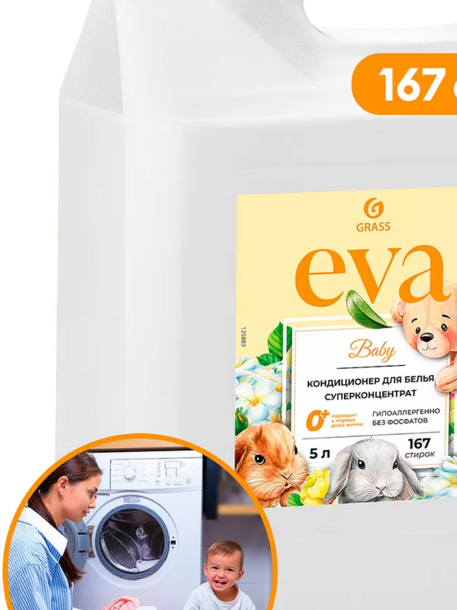 Гипоаллергенный кондиционер для белья EVA baby предназначен для белья и одежды детей и новорожденных. Идеально подходит для чувствительной и нежной кожи, бережно ухаживает за всеми видами ткани, полностью выполаскивается из одежды, поддерживает эластичность волокон, придает белью мягкость и приятный аромат на продолжительное время. Кондиционер облегчает глажение и обладает антистатическим эффектом.