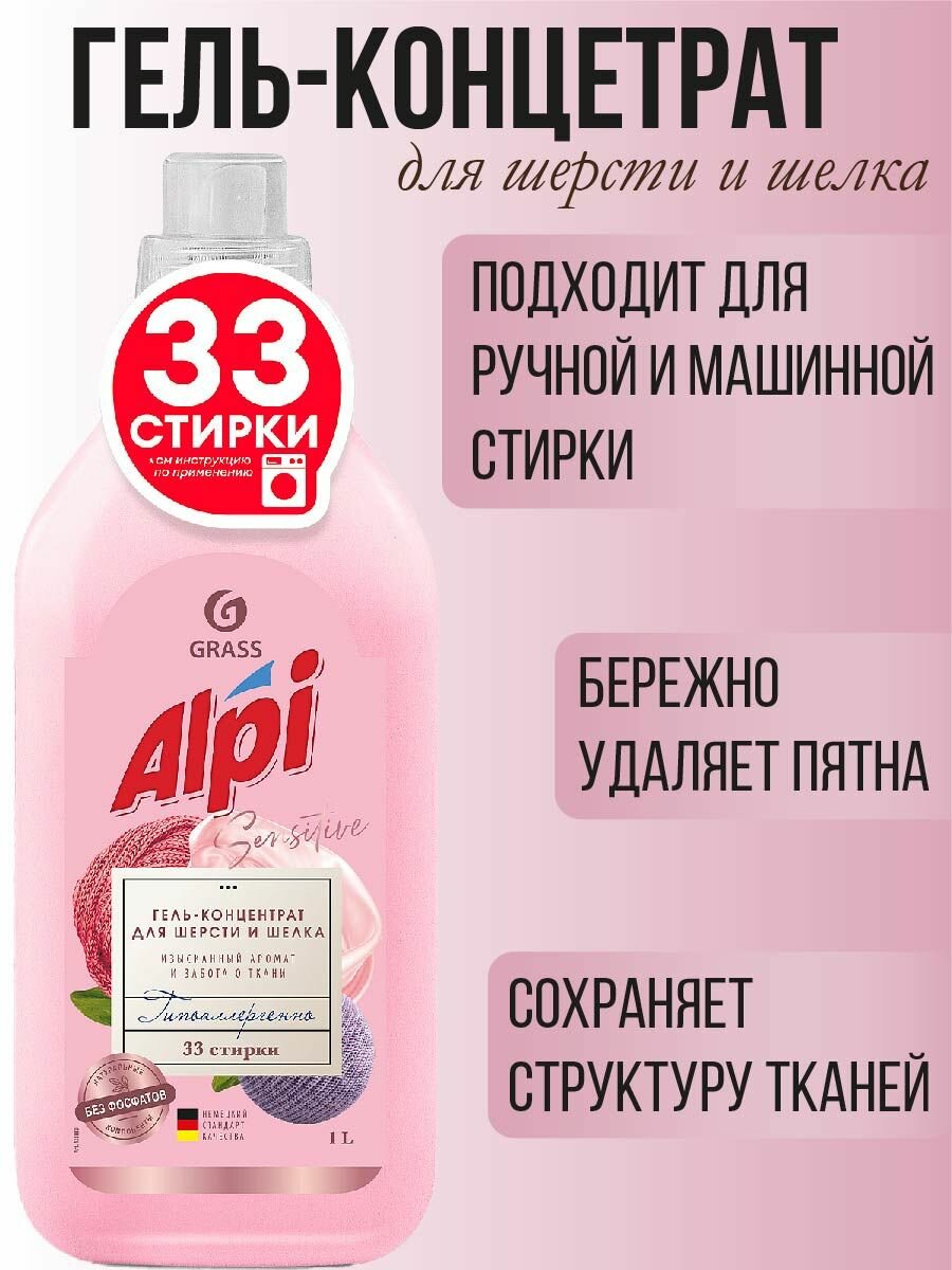 Сервис сравнения цен СкидкаГИД предлагает сравнить цены на товар «Гель концентрат для стирки Grass Alpi для шерсти и шелка 1 л»