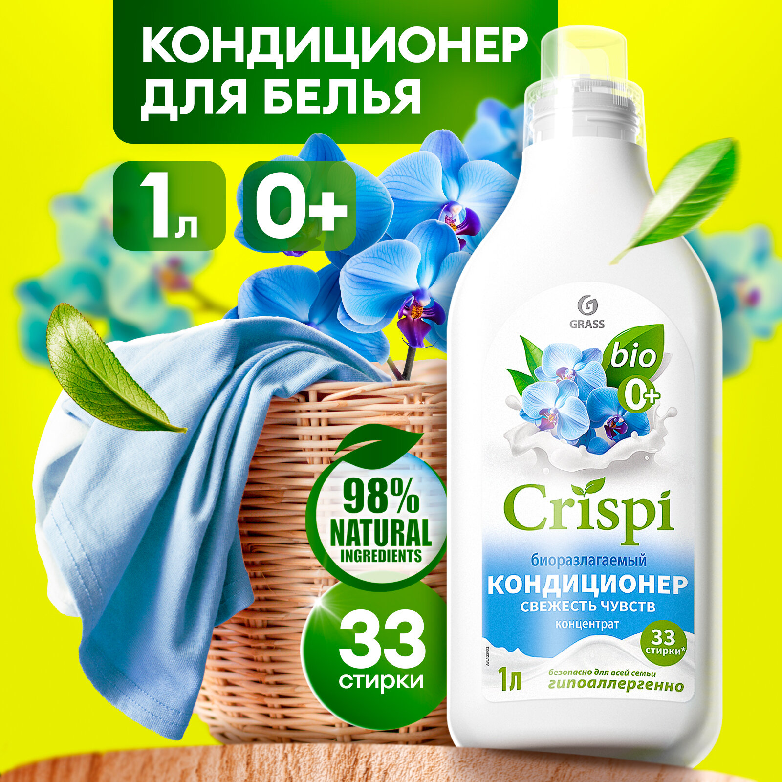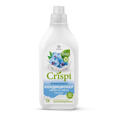 Биоразлагаемый кондиционер для стирки белья CRISPI Свежесть чувств 1л от Grass на 33 стирки - представляет собой универсальный высокоэффективный гипоаллергенный ополаскиватель с изысканным ароматом орхидеи, бергамота и древесными нотами пачули. Идеально подходит для стирки детской одежды и вещей новорожденных (0+), а также черного, темного, белого и цветного белья, применим для всех типов ткани. Полностью вымывается, не оставляя разводов и следов на одежде или белье, сохраняет структуру и цвет, обладает антистатическим эффектом. За счёт входящих в состав компонентов на основе масла кокоса и пальмы - облегчает глажку одежды после стирки, придаёт вещам мягкость и свежий аромат. Подходит для всех типов стиральных машин, безопасен для септика. Способ применения: 1. Тщательно взболтайте флакон. 2. Для автоматической стирки - налейте 30мл средства в выдвижной отсек стиральной машины. 3. Для ручной стирки - полностью растворите в воде для полоскания. Бытовая химия Эко Криспи - это незаменимые помощники в деле любой уборки. С нашими средствами из линейки Грасс - ваша стирка белья преобразится в многоплановый, интересный процесс, подарив комплексный уход и приятный аромат всем вашим вещам!