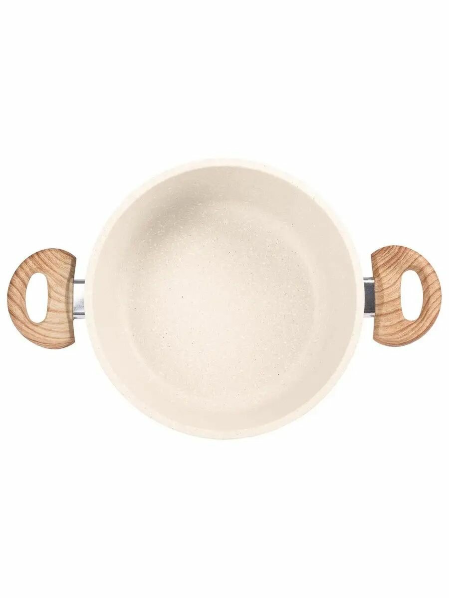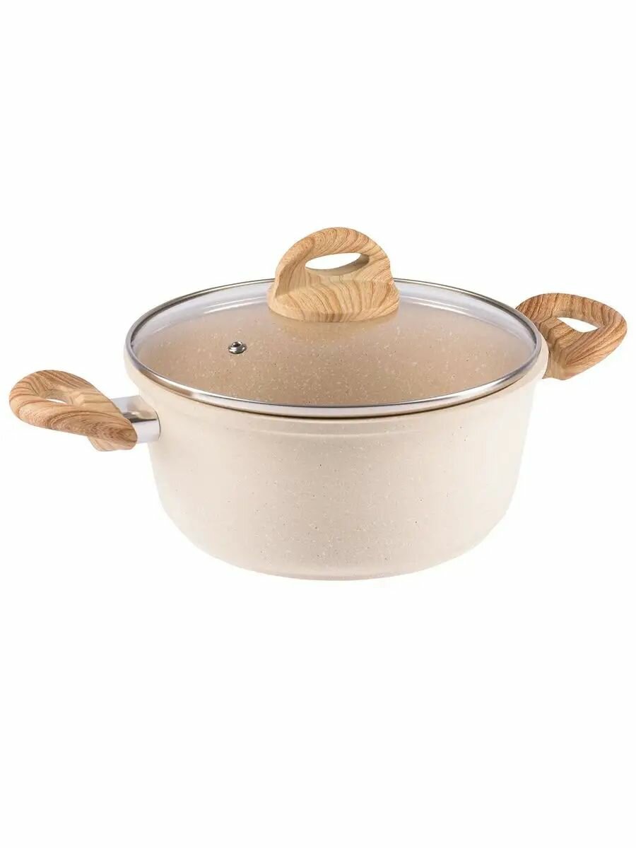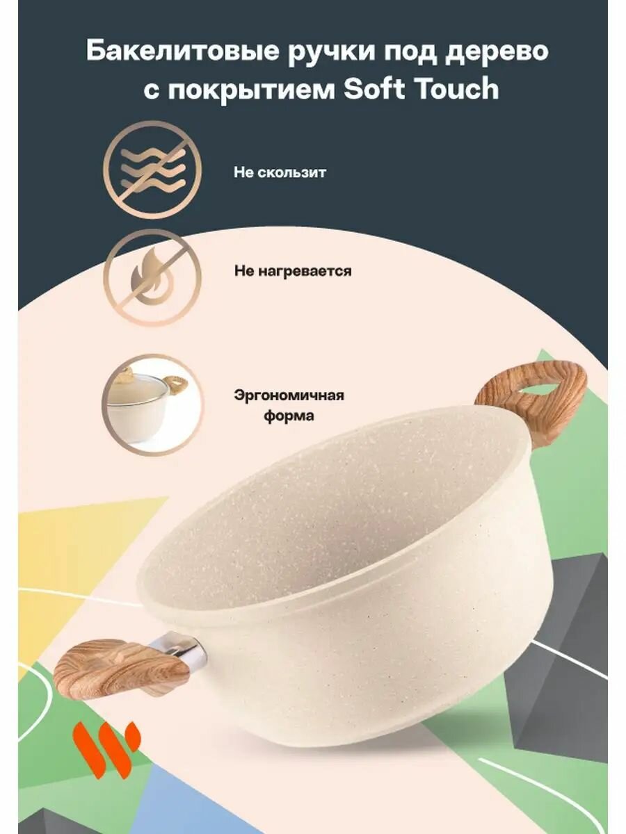 Эта кастрюля с толстым дном удивит вас своей практичностью. Модель представляет собой идеальный баланс легкости и прочности, бакелитовые ручки с покрытием Soft touch приятны на ощупь и не нагреваются при готовке.