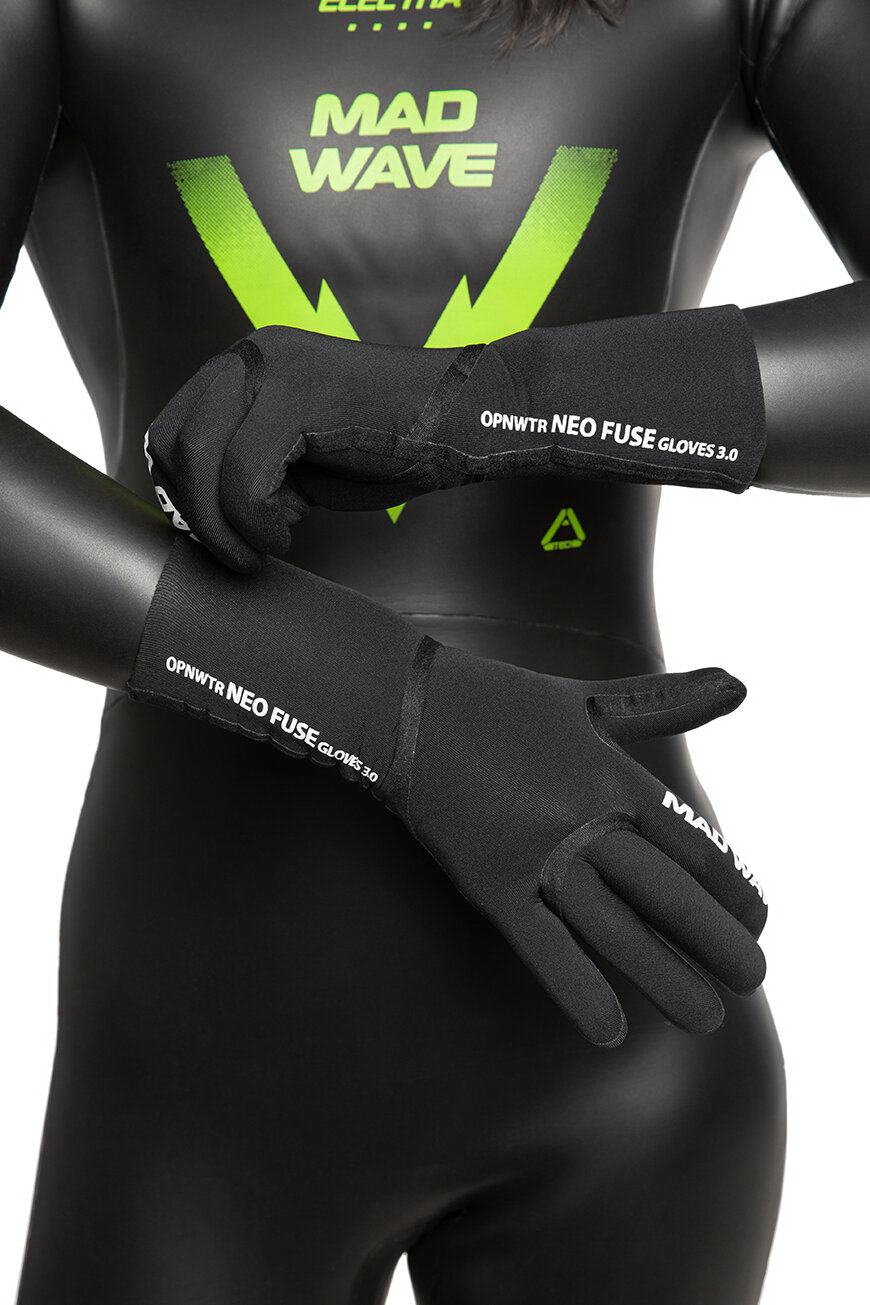 Неопреновые перчатки для мужчин NeoFuse Neoprene Gloves men сохранят тепло в холодных заплывах и защитят руки от механических повреждений. Перчатки выполнены из неопрена толщиной 3 мм. Подойдут для плавания на открытой воде с температурой от +5° до +18°C. Перчатки плотно сидят на руке. Клееные ленты по швам не дают воде просачиваться внутрь. Удлиненные манжеты позволяют заправить перчатки в рукава гидрокостюма.