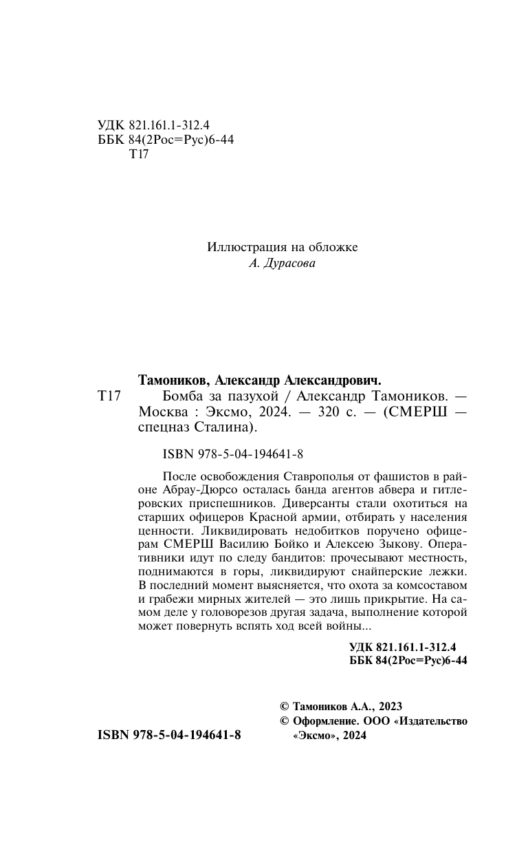 Книга: Бомба за пазухой (Тамоников Александр Александрович); ООО "Издательство "Эксмо", 2024