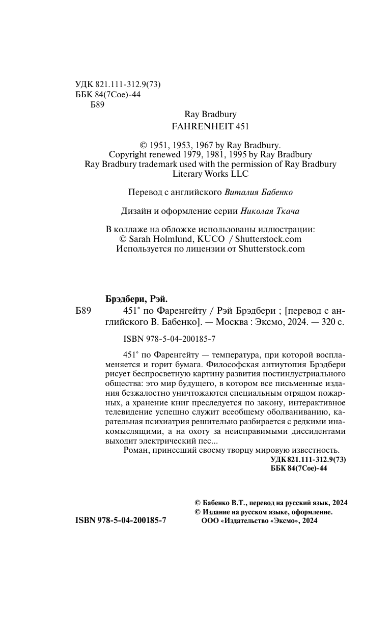 Книга: 451' по Фаренгейту (Рэй Брэдбери); Эксмо, 2025