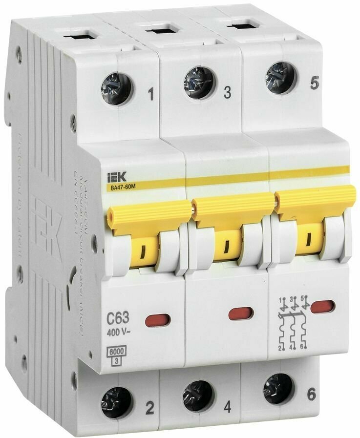 Автоматический выключатель модульный IEK 3п C 63А 6кА ВА47-60M MVA31-3-063-C