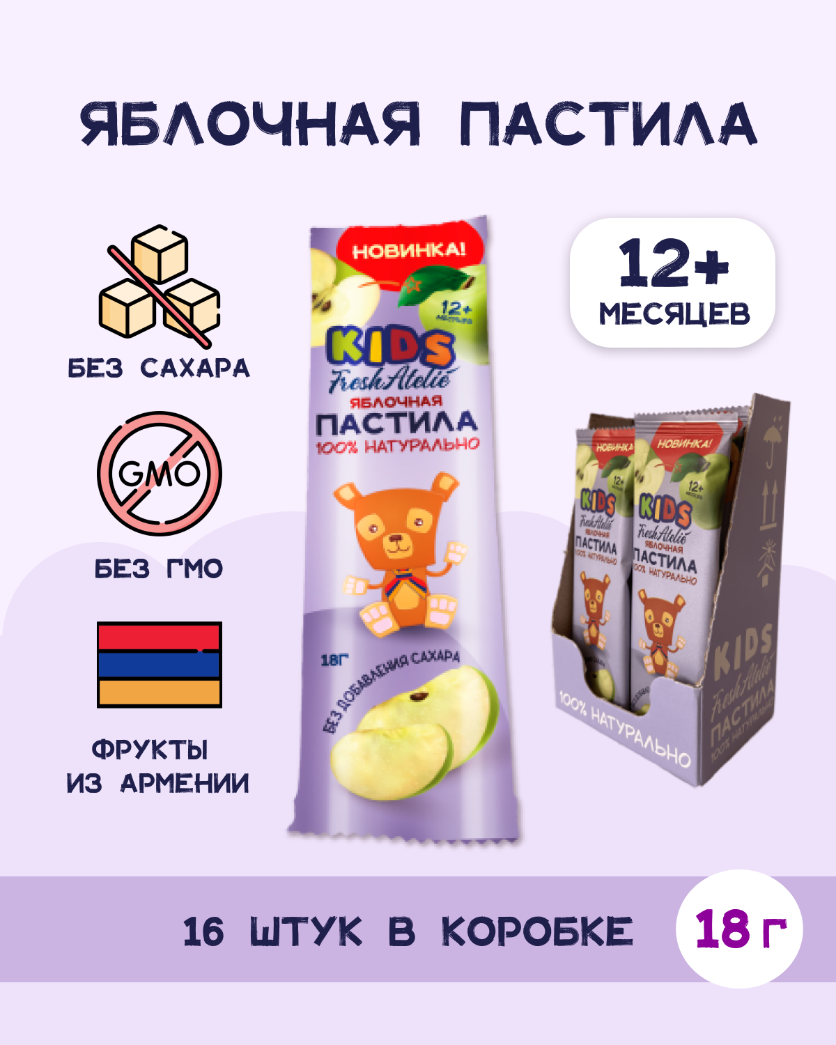 Фруктовая пастила Пластинка Fresh Atelie KIDS для детей с 12 месяцев.
