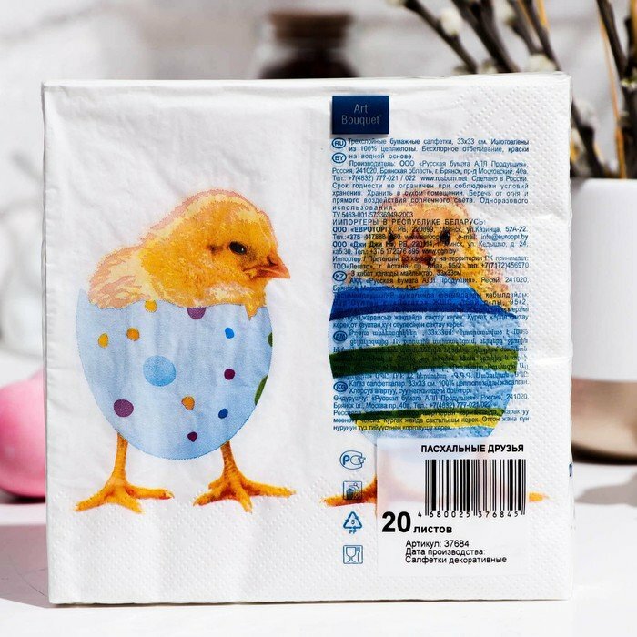Салфетки одноразовые бумажные Bouquet Пасхальные друзья 3-слоя 33х33 см 20 шт (размер: 33 x 33 см)