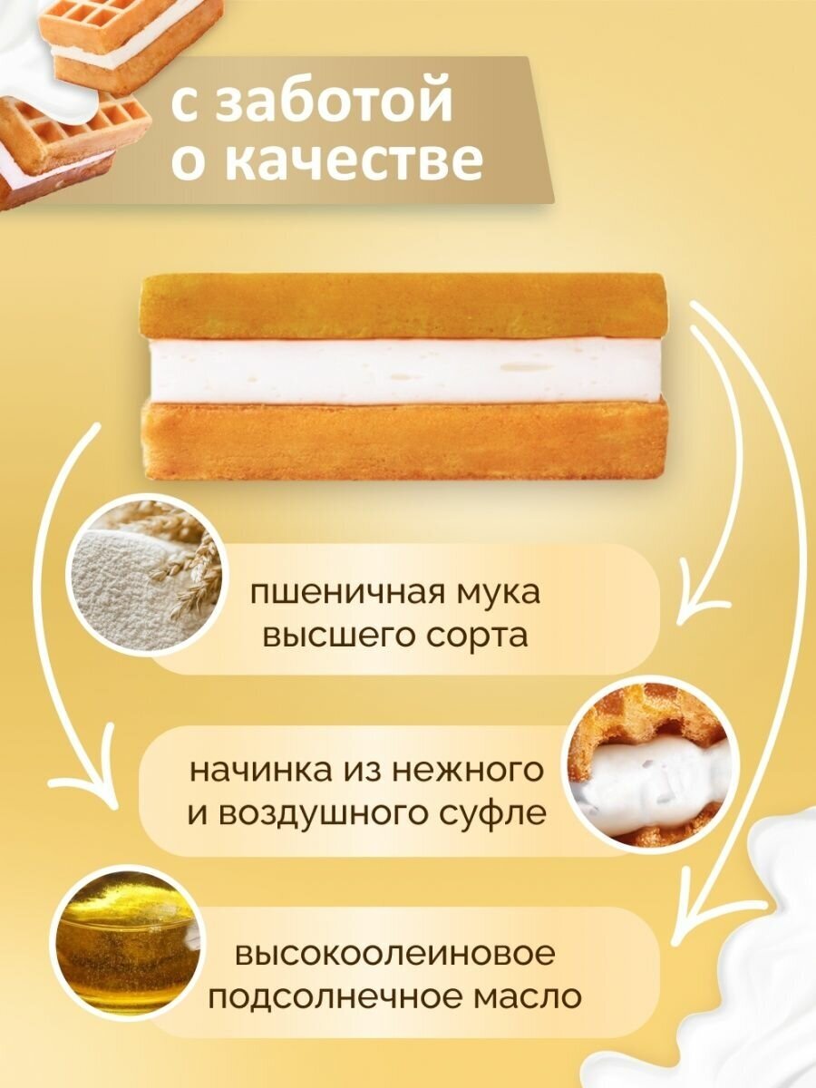 | Состав | мука пшеничная высшего сорта, продукты яичные (меланж), сахар, патока, олеин пальмовый, вода, заменитель молочного жира (рафинированные дезодорированные растительные масла |