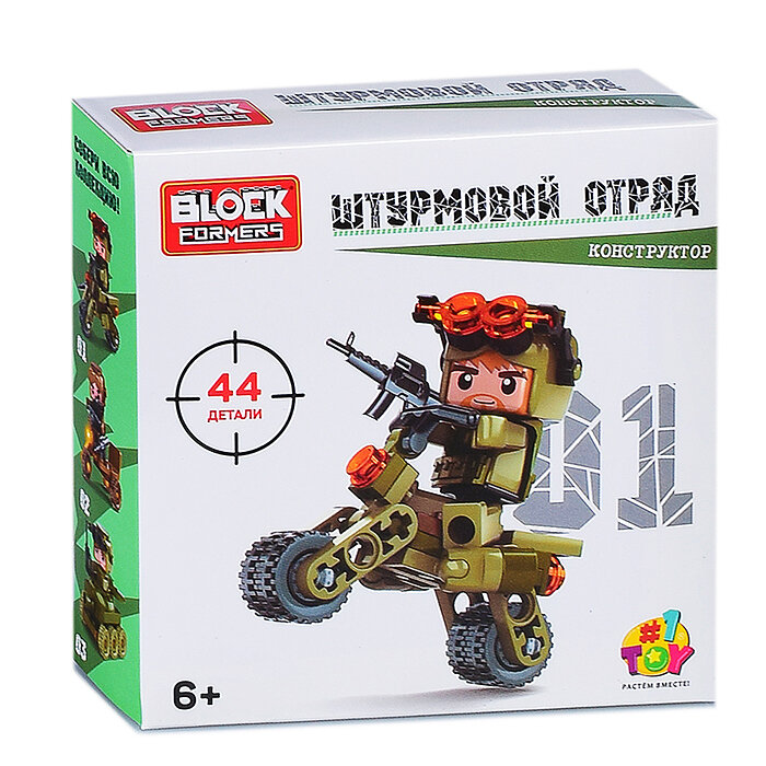 3D-конструктор от бренда 1TOY "Blockformers Штурмовой отряд" - это идеальный выбор для тех, кто мечтает о захватывающих приключениях и незабываемых сражениях! Он имеет красочный и необычный дизайн, который не оставит равнодушными любителей сборки конструкторов! В серии 6 видов, можно собрать все конструкторы, чтобы на полочке красовался свой собственный штурмовой отряд. Собирая конструктор, мы не только увлекаемся на продолжительный период времени, развиваем внимание, креативное и пространственное мышление, но и становимся усидчивыми и целеустремленными. Также при взаимодействии с мелкими деталями совершенствуется мелкая моторика рук. Подойдет такой конструктор для мальчиков и девочек старше 6 лет, а также может стать полезным подарком на любой праздник. Товар представлен в ассортименте, без возможности выбора.