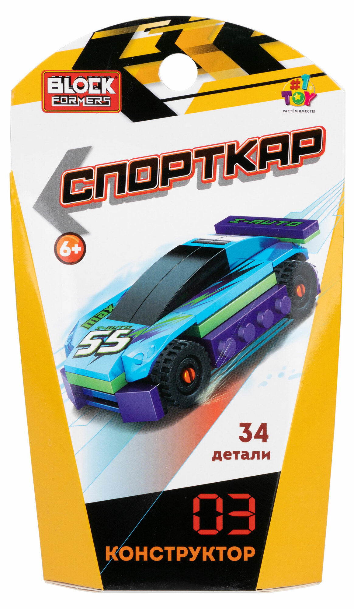 Развивающая игрушка для конструирования "Blockformers Спорткар" от бренда 1TOY представлена в форме машинки в ассортименте, всего 6 видов разных цветов. Конструктор содержит от 22 до 37 деталей, в зависимости от вида машинки и развивает мелкую моторику, внимательность, усидчивость и логику. Товар представлен в ассортименте без возможности выбора.