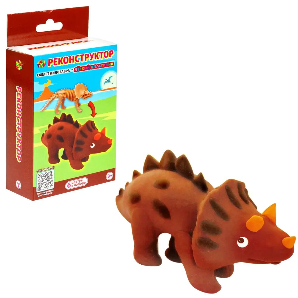 Творческий набор для лепки "Реконструктор" представляет собой скелет динозавра и лёгкий пластилин, с помощью которого ребёнок сам сможет за 3 шага собрать яркого динозаврика: стегозавра, овираптора, тираннозавра, трицератопса, спинозавра или бронтозавра. В ассортименте всего 6 цветов и видов. Можно собрать всю коллекцию! Сначала необходимо собрать деревянный конструктор для создания скелета - основы динозавра. Далее необходимо нанести лёгкий пластилин на скелет, чтобы придать объёма и цвета динозаврику. После лепки пластилин застывает и динозаврик превращается в крепкую фигурку! В процессе лепки, ребенок в легкой игровой форме будет развивать мелкую моторику пальчиков и развивать свою фантазию. Особенность пластилина не только в его весе, но и в необычной текстуре: он легко лепится, не липнет к рукам и не оставляет следов и неприятных ощущений на коже, а после высыхания застывает в течение суток, сохраняя форму фигурки, повторно слепить игрушку из пластилина уже нельзя. Товар представлен в ассортименте без возможности выбора.
