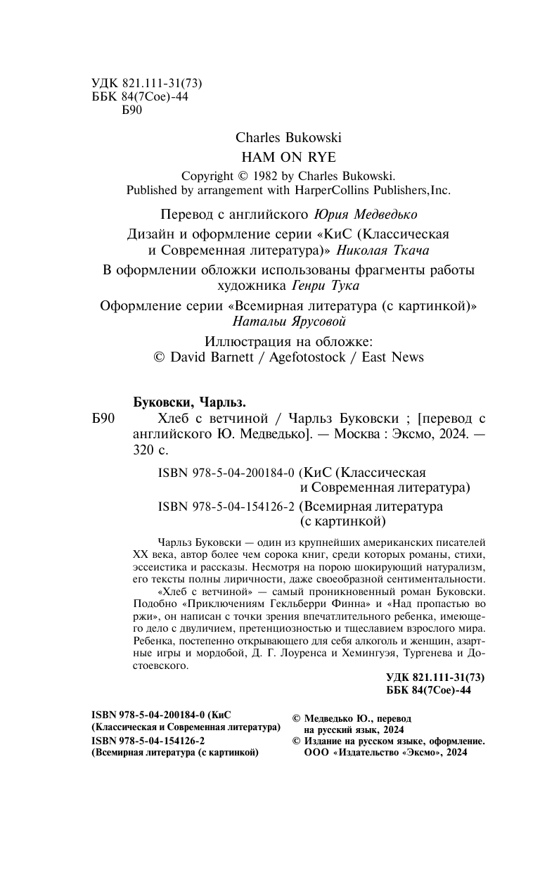 Книга: Хлеб с ветчиной (Буковски Чарльз); Эксмо, 2024