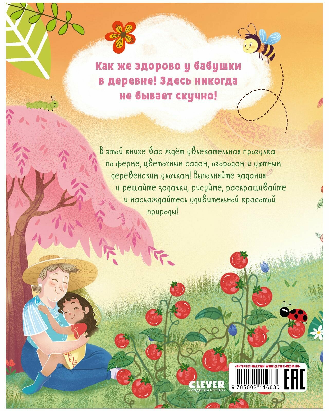 Как же здорово у бабушки в деревне! Здесь никогда не бывает скучно! В этой книге вас ждёт увлекательная прогулка по ферме, цветочным садам, огородам и уютным деревенским улочкам! Выполняйте задания и решайте задачки, рисуйте, раскрашивайте и наслаждайтесь удивительной красотой природы!