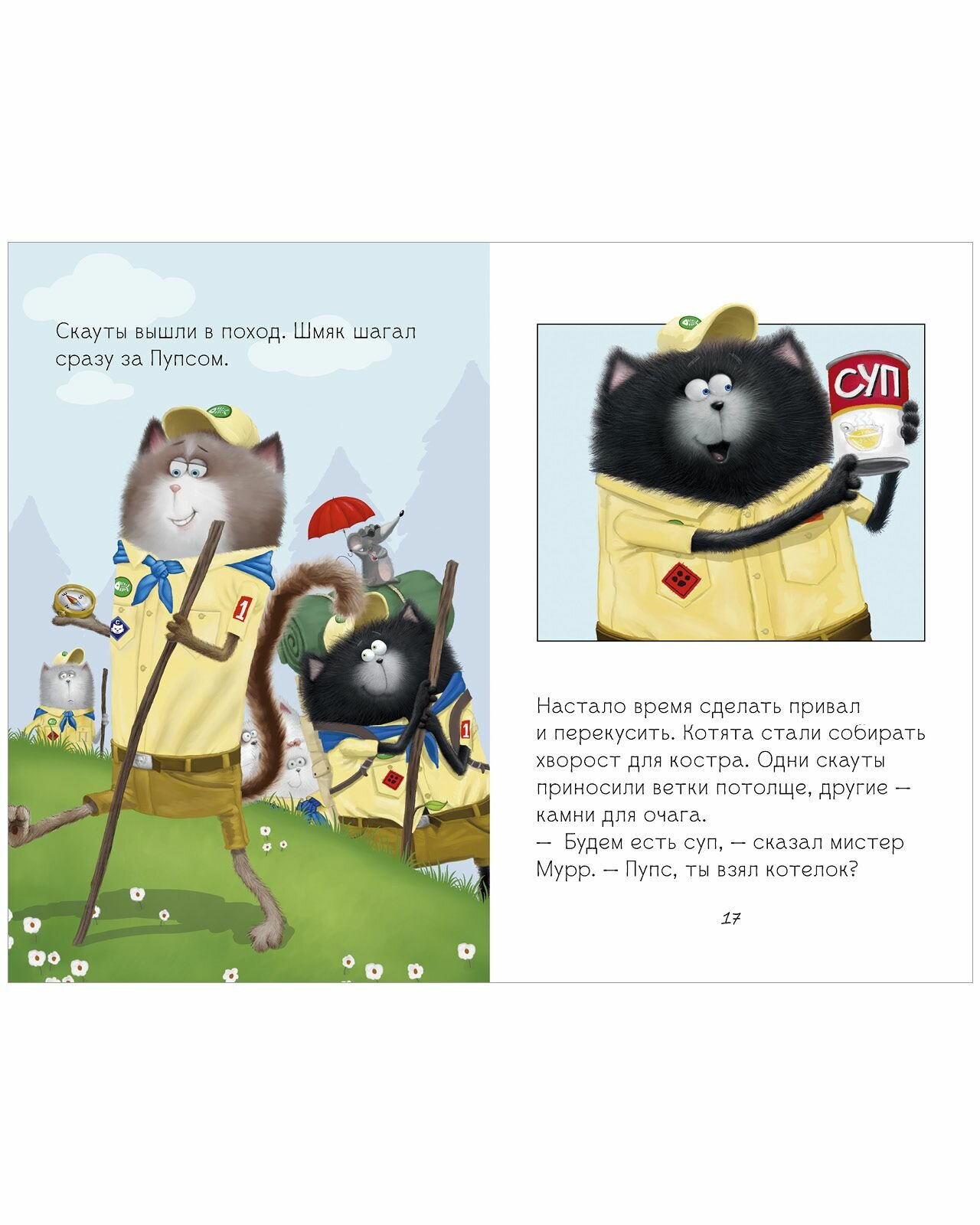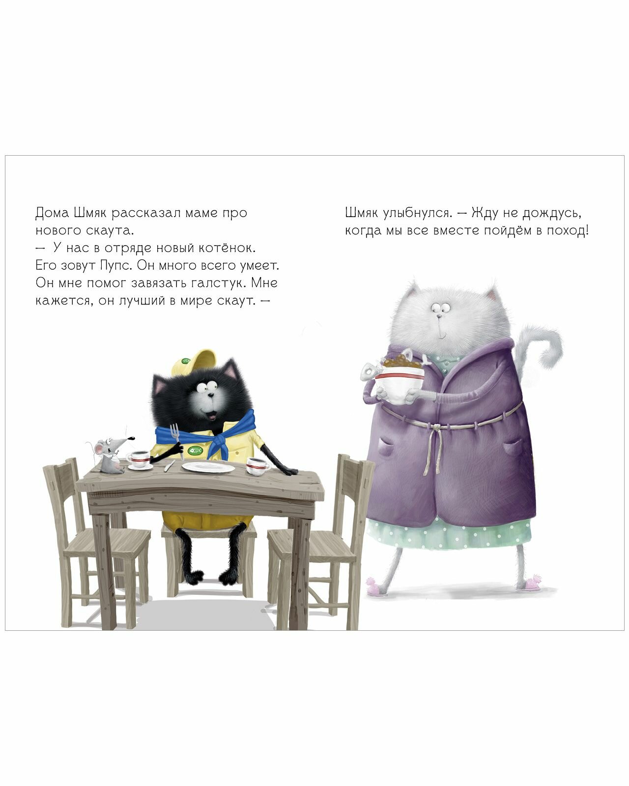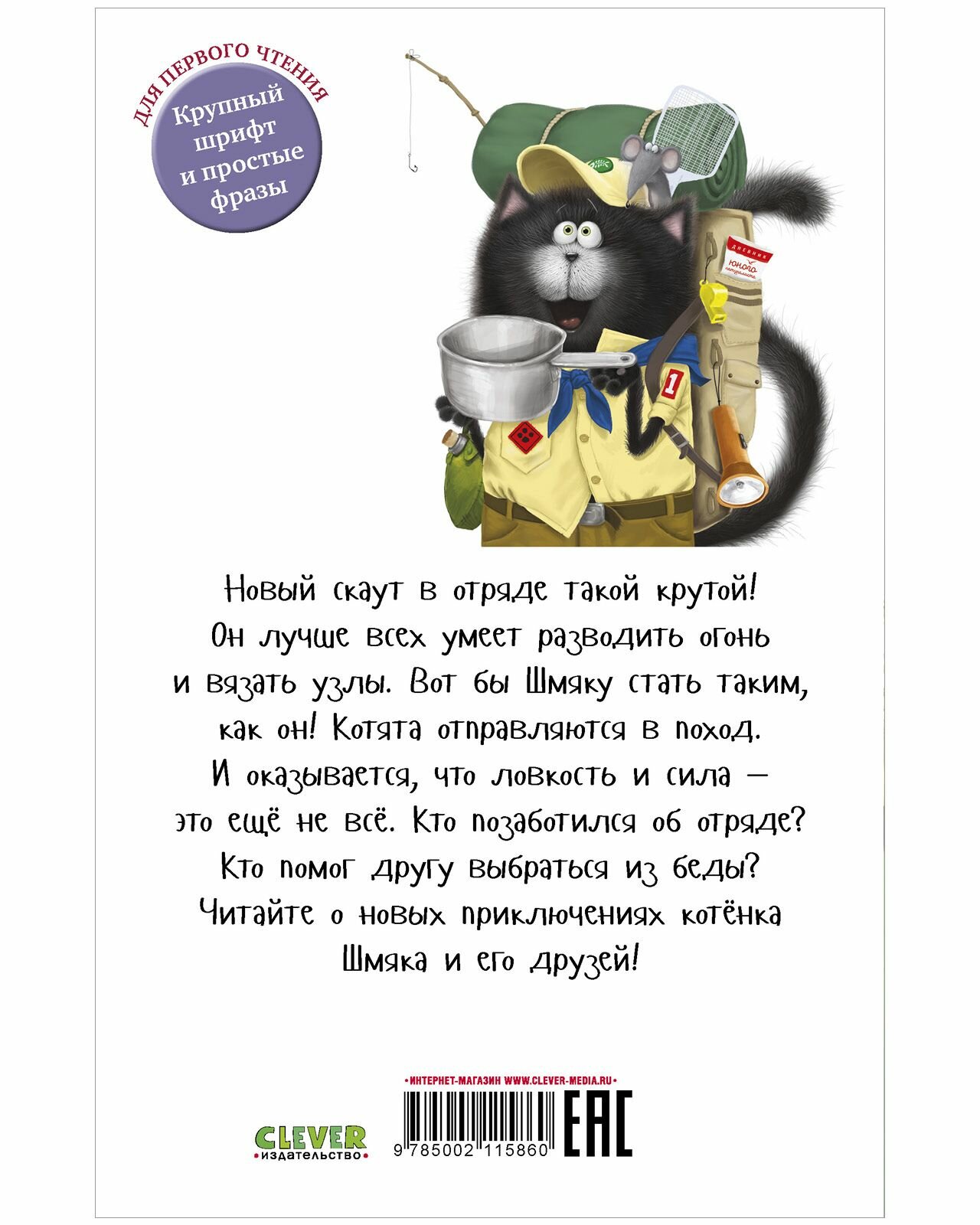 Новый скаут в отряде такой крутой! Он лучше всех умеет разводить огонь и вязать узлы. Вот бы Шмяку стать таким, как он! Котята отправляются в поход. И оказывается, что ловкость и сила это ещё не всё. Кто позаботился об отряде? Кто помог другу выбраться из беды? Читайте о новых приключениях котёнка Шмяка и его друзей!