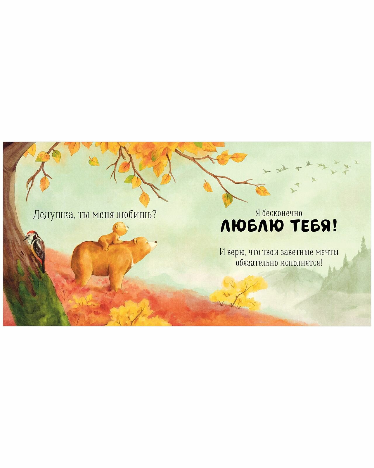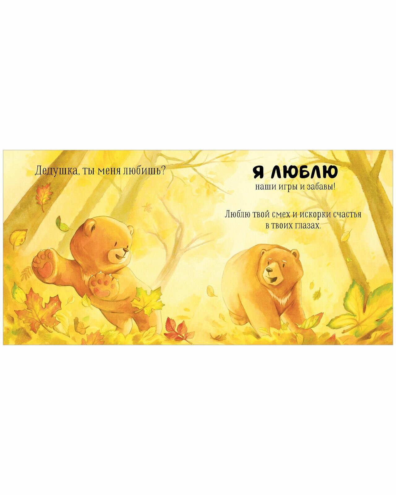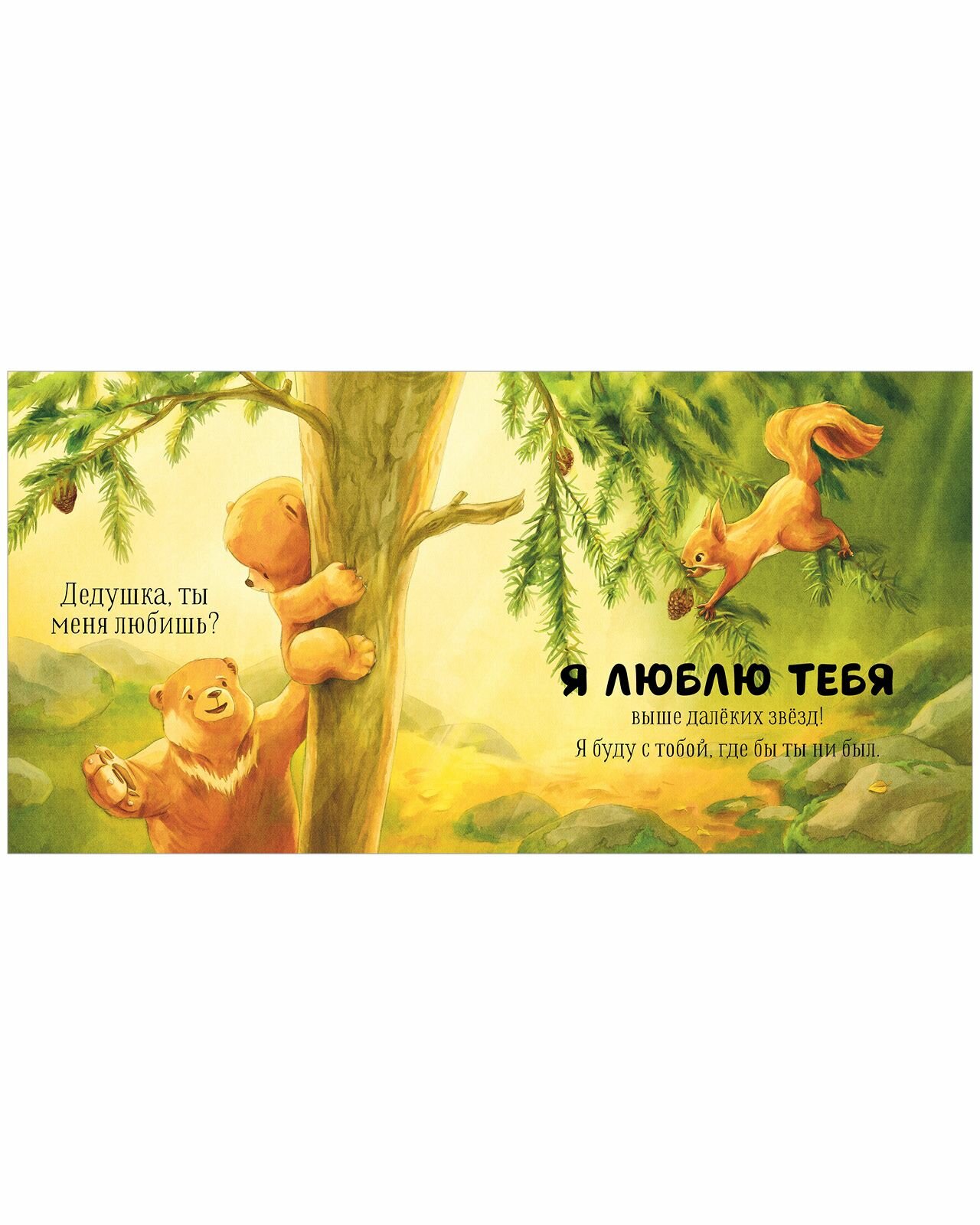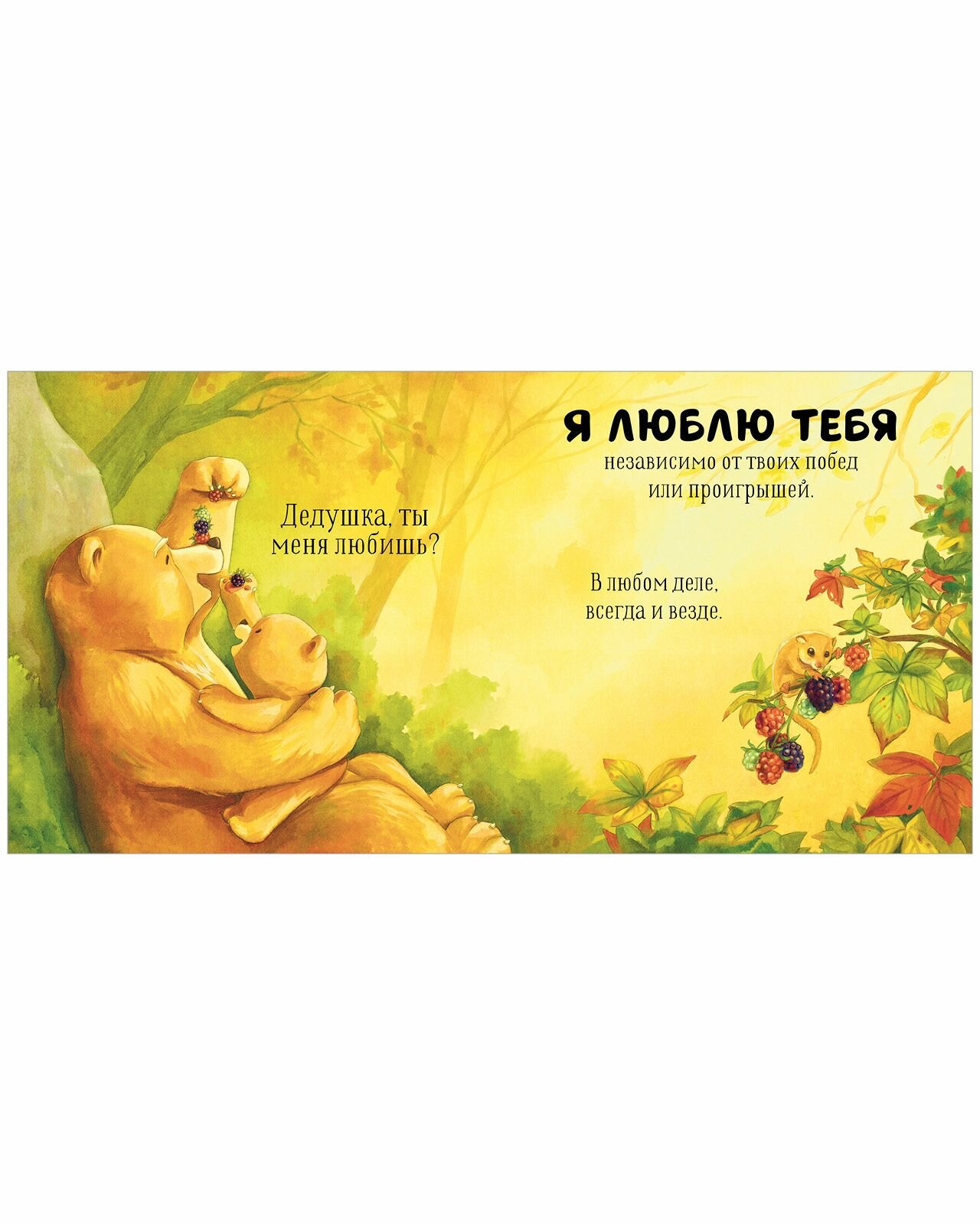 «Дедушка, ты меня любишь?» - спрашивал медвежонок, обнимая дедушку перед сном. «Любишь?» - спрашивал он, слушая сказку. И всегда слышал в ответ: «Я люблю тебя больше всего на свете!» Потому что дедушкина любовь безгранична!