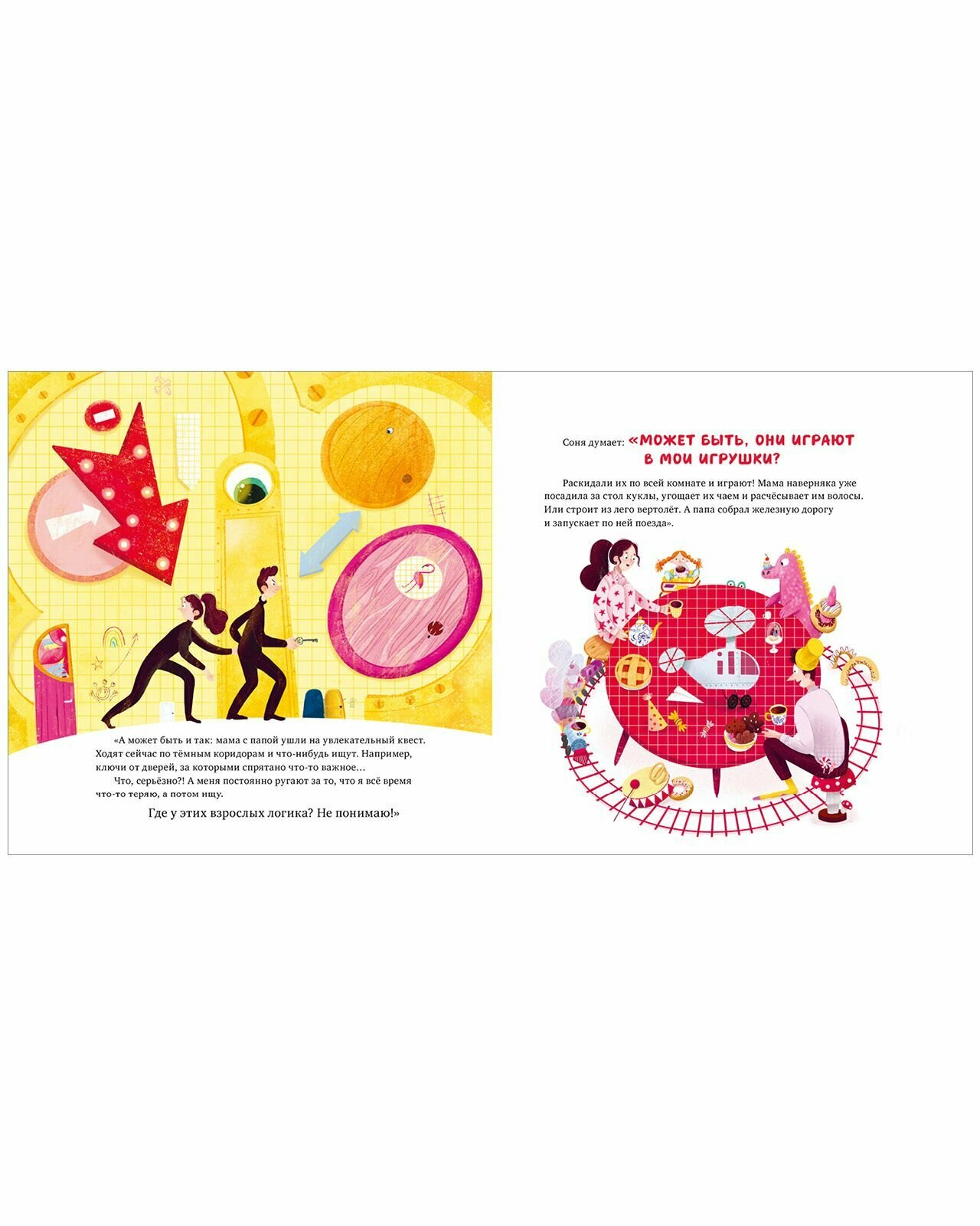 Маленькая Соня уверена, что, когда она спит, родители смотрят мультики, играют в её игрушки, наряжаются и бегают по квартире. Но что же они делают на самом деле? Соня просто обязана узнать! Устройте уютный вечер с малышом, читая эту весёлую книжку. Смейтесь, фантазируйте и наслаждайтесь временем, проведённым друг с другом.