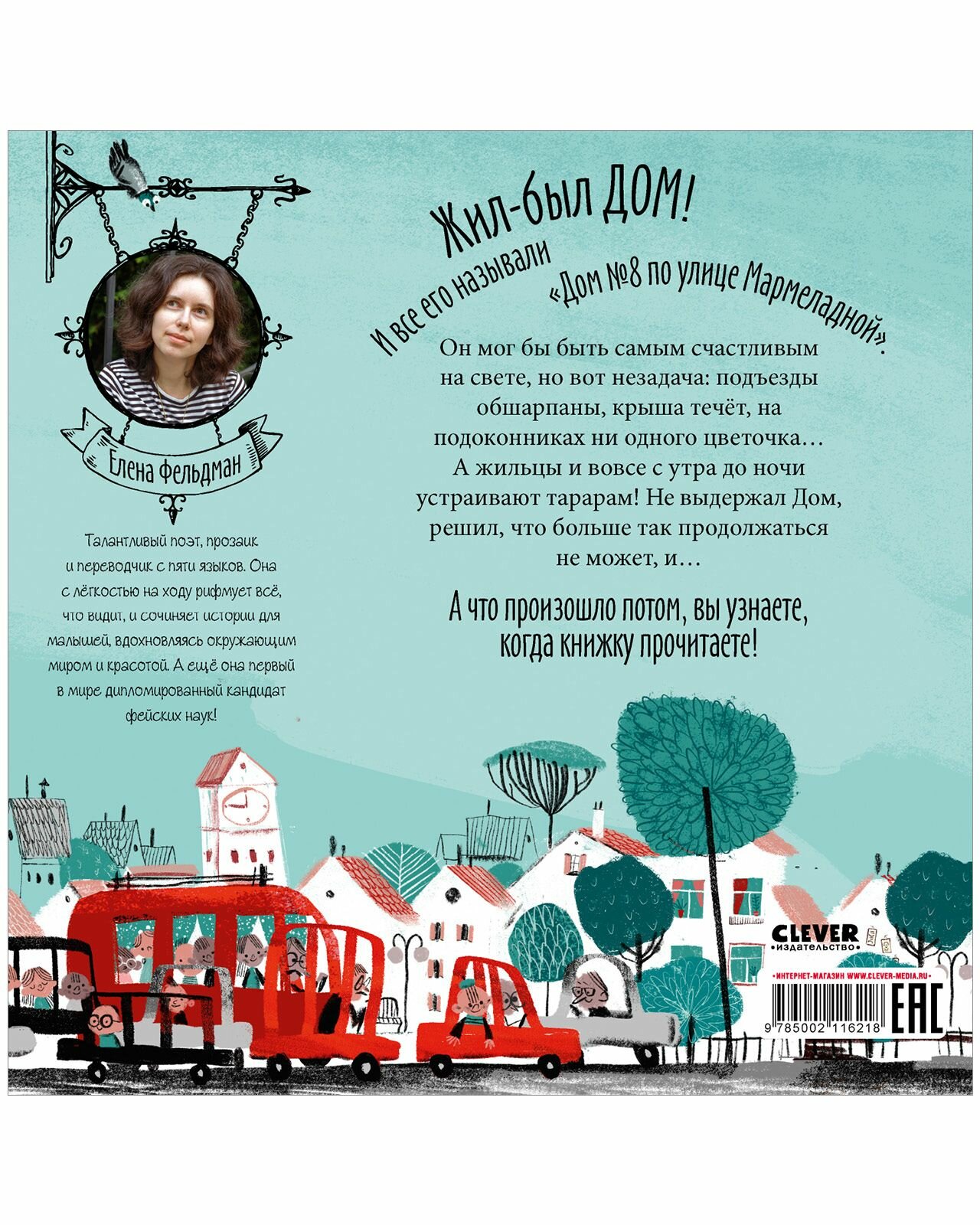 Елена Фельдман - талантливый поэт, прозаик и переводчик с пяти языков. Она с лёгкостью на ходу рифмует всё, что видит, и сочиняет истории для малышей, вдохновляясь окружающим миром и красотой. А ещё она первый в мире дипломированный кандидат фейских наук! Жил-был ДОМ! И все его называли «Дом 8 по улице Мармеладной». Он мог бы быть самым счастливым на свете, но вот незадача: подъезды обшарпаны, крыша течёт, на подоконниках ни одного цветочка А жильцы и вовсе с утра до ночи устраивают тарарам! Не выдержал Дом, решил, что больше так продолжаться не может, и А что произошло потом, вы узнаете, когда книжку прочитаете!