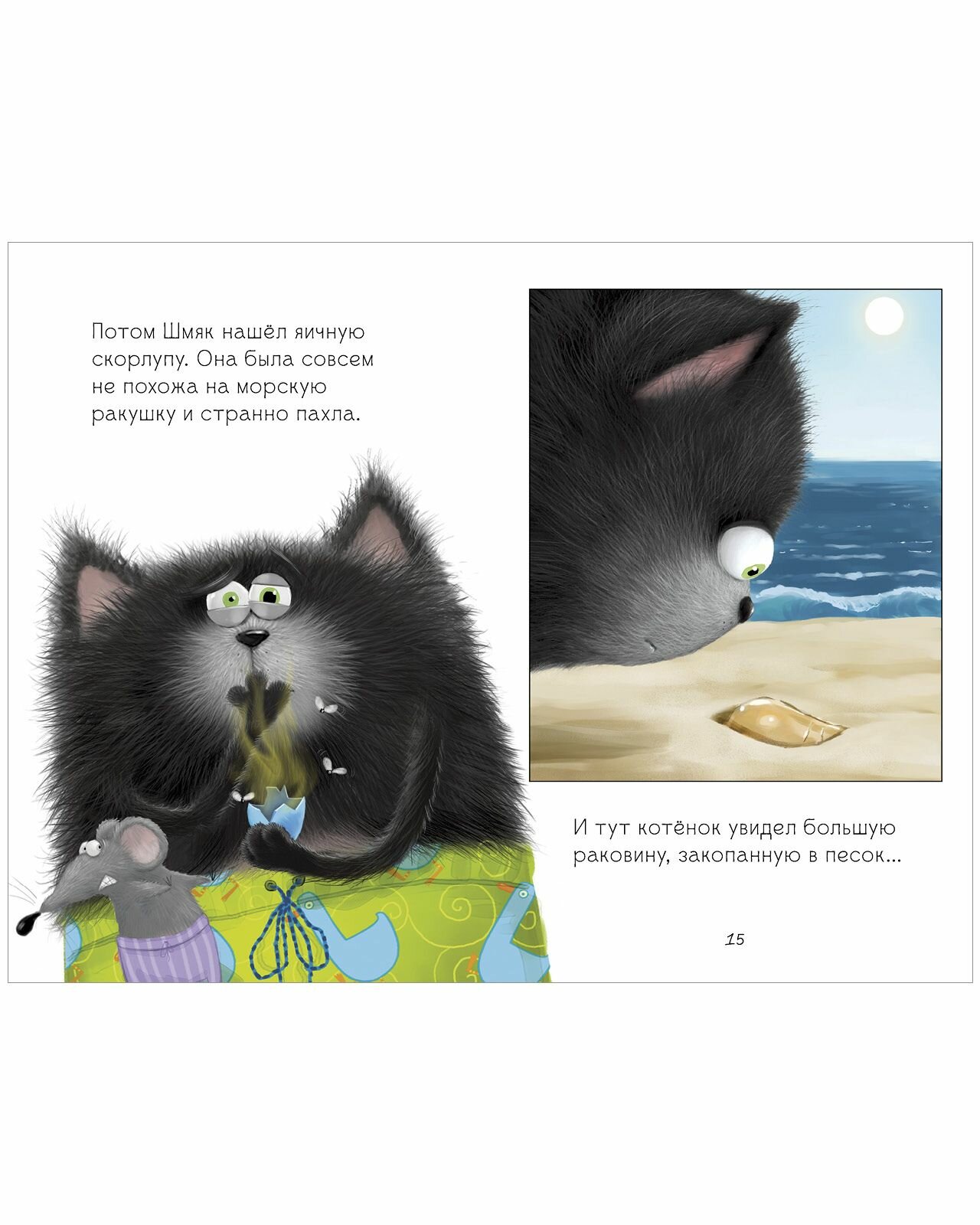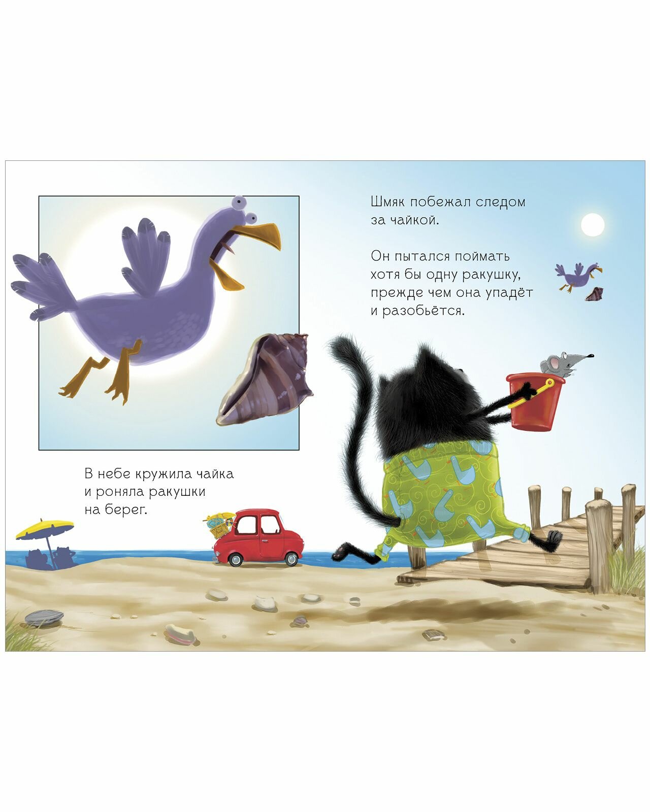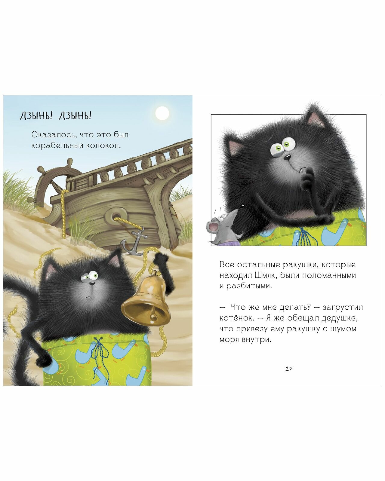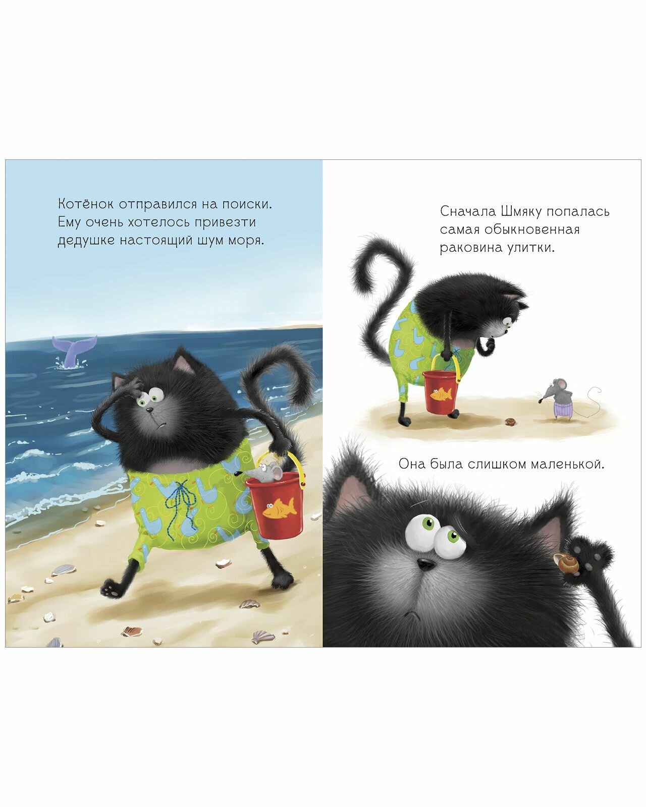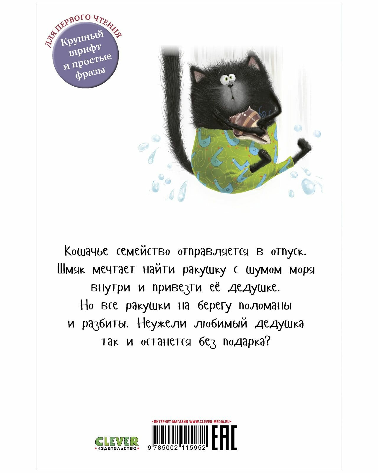 Кошачье семейство отправляется в отпуск. Шмяк мечтает найти ракушку с шумом моря внутри и привезти её дедушке. Но все ракушки на берегу поломаны и разбиты. Неужели любимый дедушка так и останется без подарка?