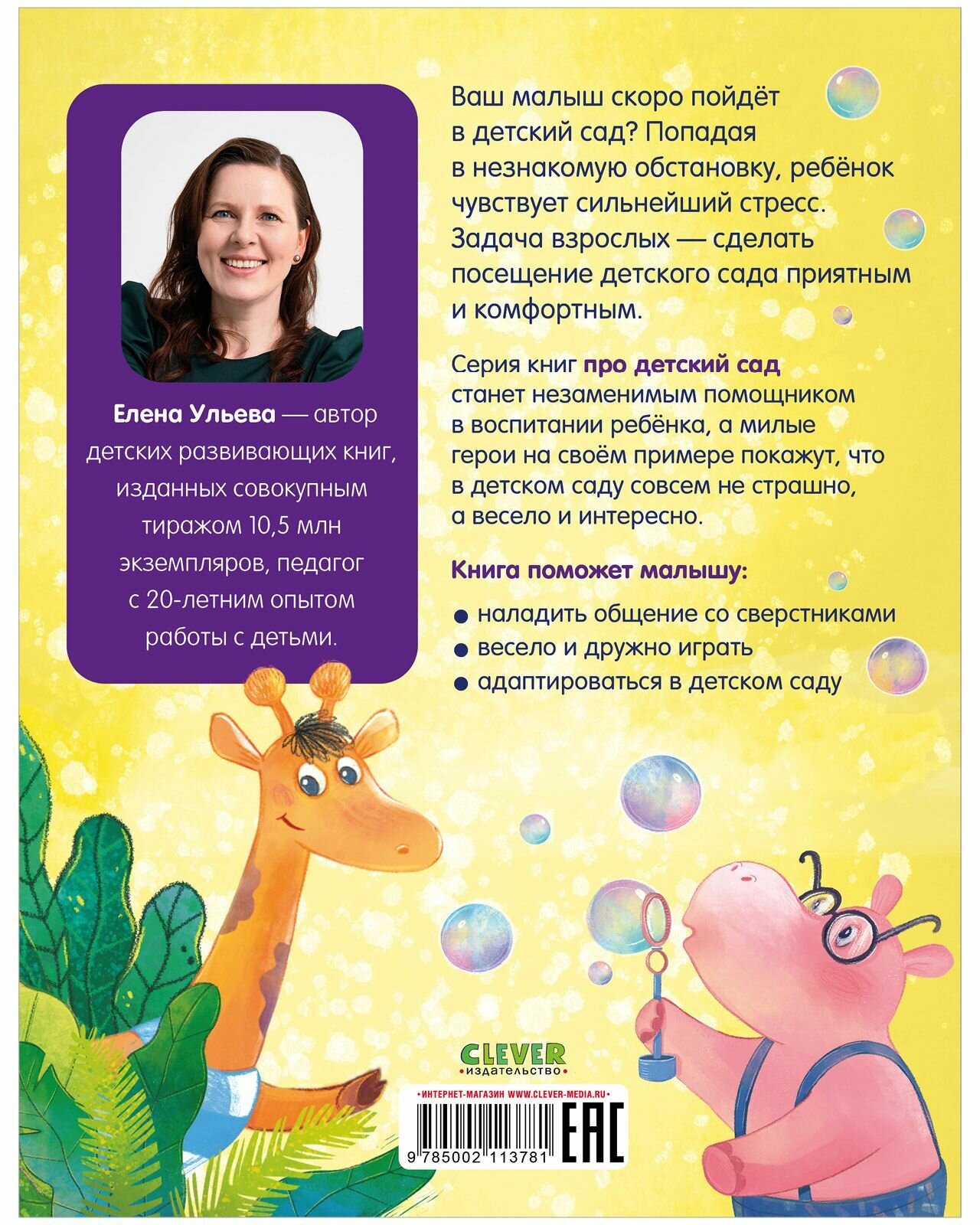 Ваш малыш скоро пойдёт в детский сад? Попадая в незнакомую обстановку, ребёнок чувствует сильнейший стресс. Задача взрослых - сделать посещение детского сада приятным и комфортным. Серия книг про детский сад станет незаменимым помощником в воспитании ребёнка, а милые герои на своём примере покажут, что в детском саду совсем не страшно, а весело и интересно. Книга поможет малышу: наладить общение со сверстниками весело и дружно играть адаптироваться в детском саду