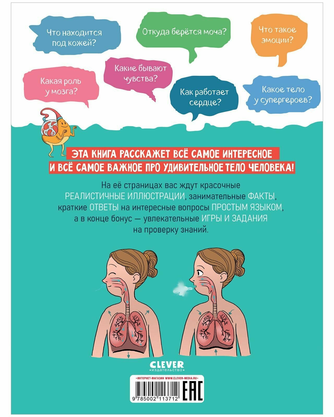Что находится под кожей? Как работает сердце? Какая роль у мозга? Что такое эмоции? Какое тело у супергероев?Энциклопедия «Невероятное тело человека» познакомит школьника с самыми важными секретами нашего организма.На страницах книги вас ждут подробные реалистичные иллюстрации, занимательные факты простым языком, краткие ответы на интересные вопросы, а в конце бонус увлекательные игры и задания на проверку знаний.ВНИМАНИЕ! Помимо прочего, книга «Невероятное тело человека» знакомит со строением мужского и женского тела, половых органов и процессами зачатия. Если вы считаете, что вашему ребенку еще рано изучать такие темы, пропустите страницы 4, 5, 36, 37, 44 и вернитесь к ним, когда посчитаете нужным.