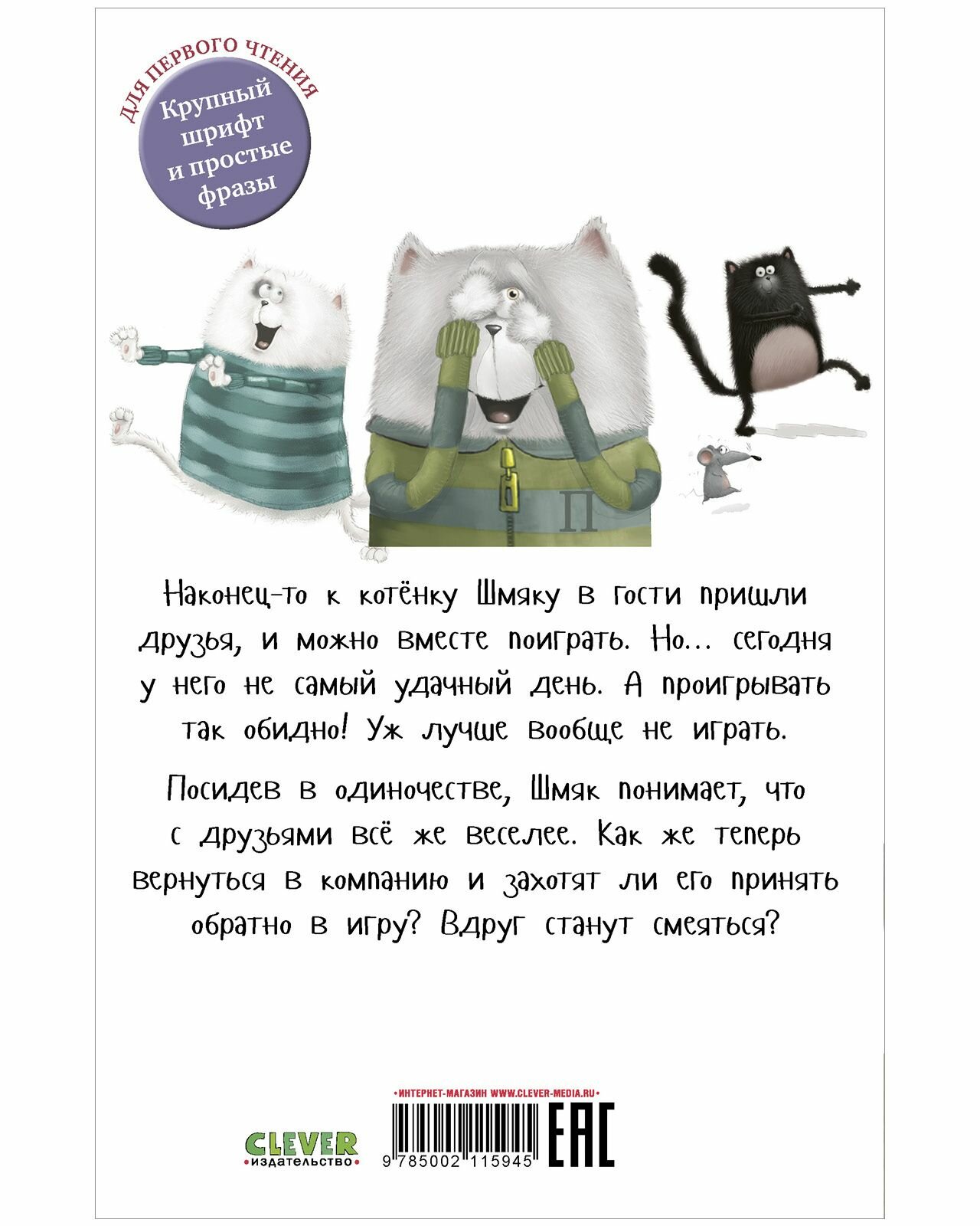 Наконецто к котёнку Шмяку в гости пришли друзья, и можно вместе поиграть. Но сегодня у него не самый удачный день. А проигрывать так обидно! Уж лучше вообще не играть. Посидев в одиночестве, Шмяк понимает, что с друзьями всё же веселее. Как же теперь вернуться в компанию и захотят ли его принять обратно в игру? Вдруг станут смеяться?