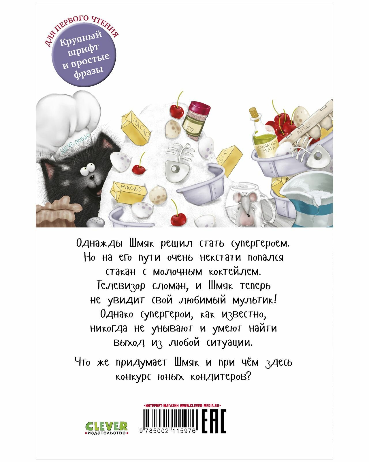Однажды Шмяк решил стать супергероем. Но на его пути очень некстати попался стакан с молочным коктейлем. Телевизор сломан, и Шмяк теперь не увидит свой любимый мультик! Однако супергерои, как известно, никогда не унывают и умеют найти выход из любой ситуации. Что же придумает Шмяк и при чём здесь конкурс юных кондитеров?