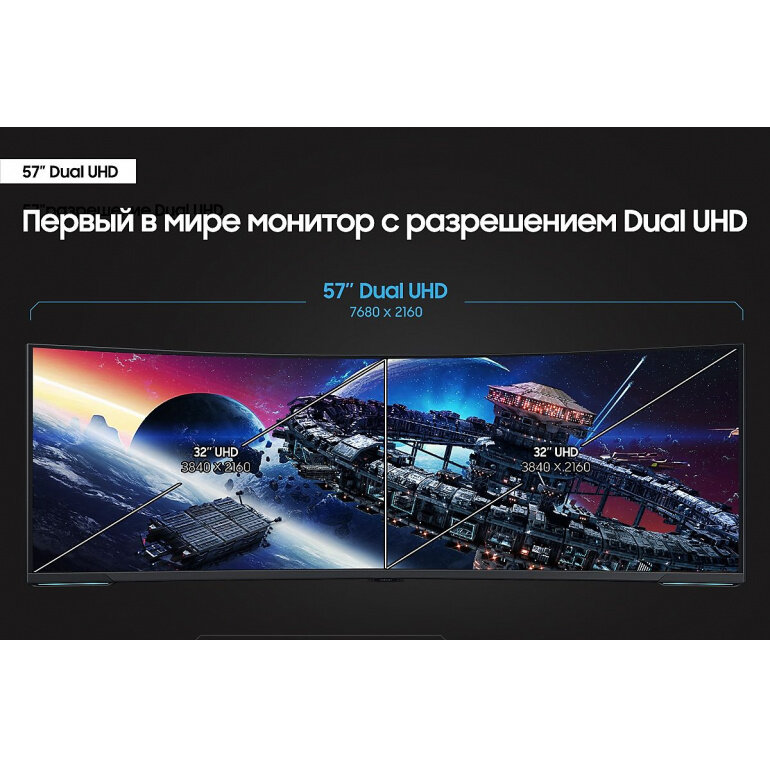 | Экран | 57 ", 7680x2160, 32:9, VA, 240 Гц, 420 кд/м2, GTG 1 мс, AMD FreeSync, изогнутый |