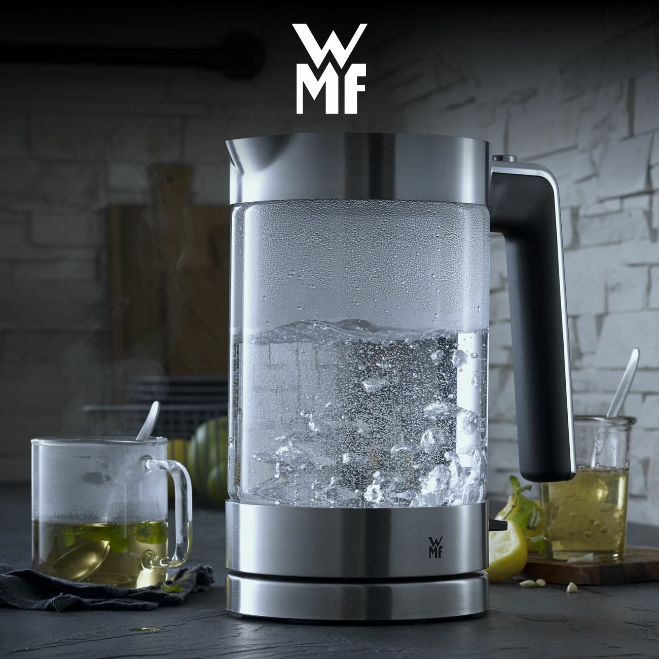 Функциональный и стильный электрочайник от WMF вкипятит воду за считанные минуты.