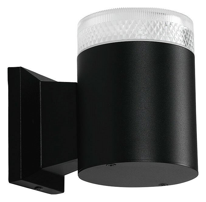 **Светильник уличный Piautos** оригинальной цилиндрической формы предназначен для освещения придомовой территории, входных групп, открытых пространств. Корпус прибора габаритами 9 х 12 х 14 см (ширина/высота/глубина) выполнен из окрашенного алюминия и защищен от пыли и влаги по стандарту IP54. Для работы потребуется 1 светодиодная лампа с цоколем GX53 и мощностью до 15 Вт. Тип монтажа — настенный.