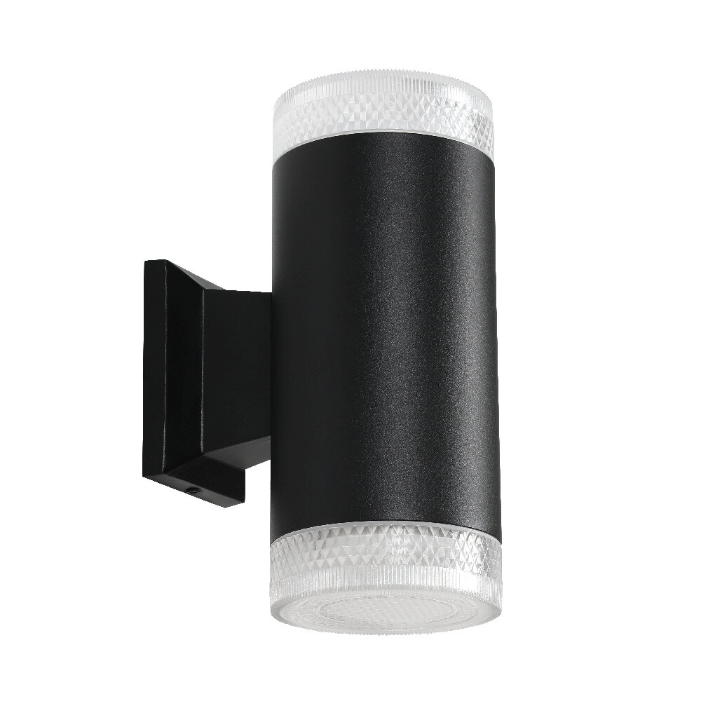 **Светильник уличный Piautos 2** оригинальной цилиндрической формы предназначен для освещения придомовой территории, входных групп, открытых пространств. Корпус прибора габаритами 9 х 21 х 14 см (ширина/высота/глубина) выполнен из окрашенного алюминия и защищен от пыли и влаги по стандарту IP54. Для работы потребуется 2 светодиодные лампы с цоколем GX53 и мощностью до 15 Вт. Тип монтажа — настенный.