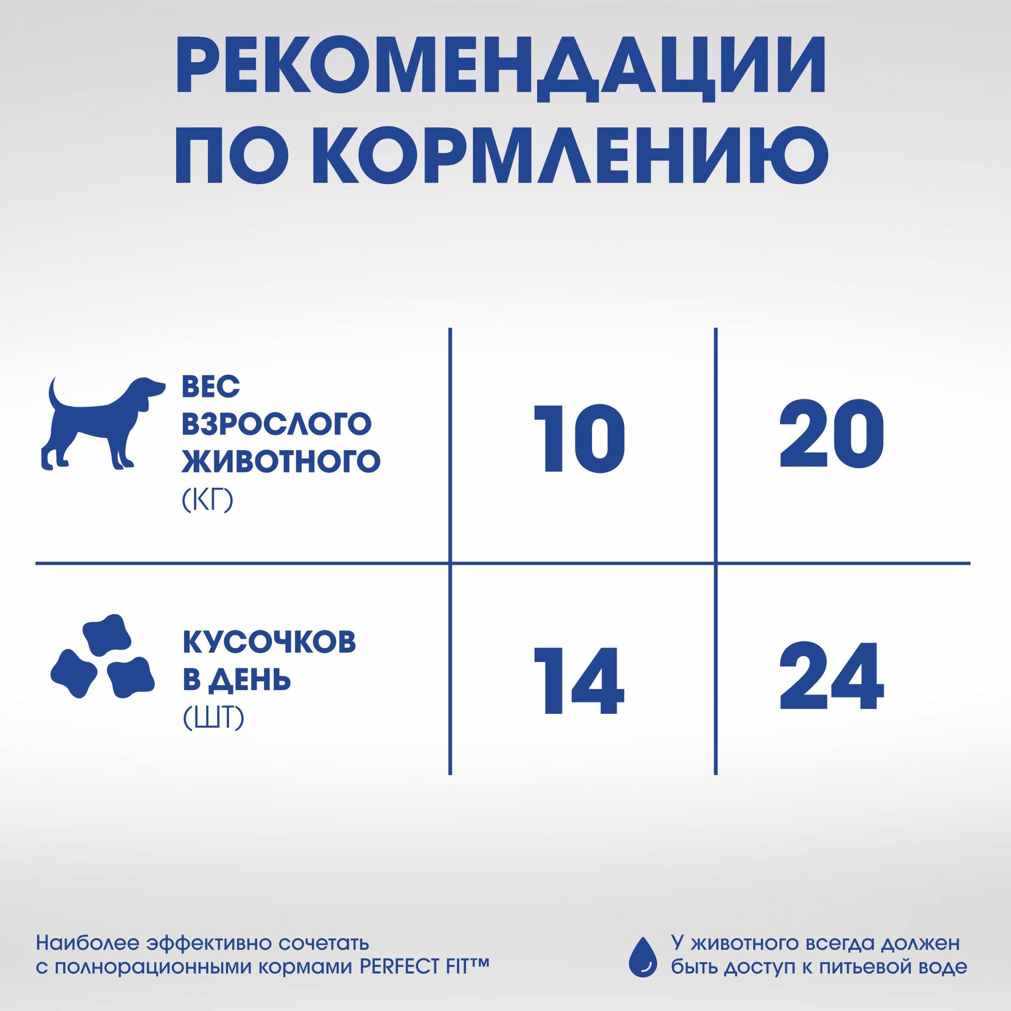 Функциональные лакомства PERFECT FIT - это линейка профессиональных лакомств, созданная специально для ежедневного ухода за здоровьем вашего питомца. Функциональное лакомство PERFECT FIT JOINTS с говядиной и добавлением рыбьего жира и глюкозамина поможет поддержать здоровье суставов вашей собаки. Особый комплекс глюкозамина и омега-3 жирных кислот помогает организму поддерживать здоровье суставов при соблюдении рекомендаций по кормлению. Функциональное лакомство PERFECT FIT JOINTS подходит для щенков от 2 месяцев. В основе рецептуры функционального лакомства PERFECT FIT JOINTS лежит особая формула, разработанная совместно с ветеринарными врачами Центра изучения питания домашних животных ООО «Марс». Лакомство производится без добавления искусственных красителей и консервантов.